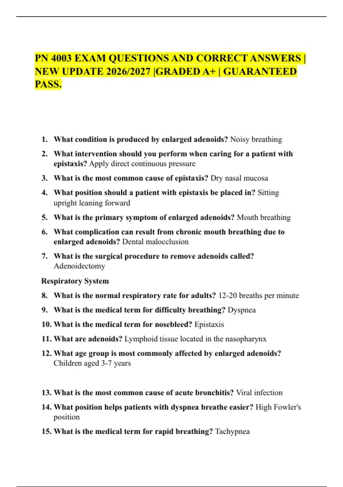 1. What condition is produced by enlarged adenoids? Noisy breathing