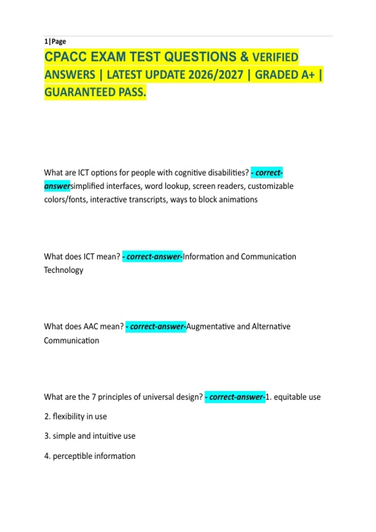 CPACC EXAM TEST QUESTIONS & VERIFIED
