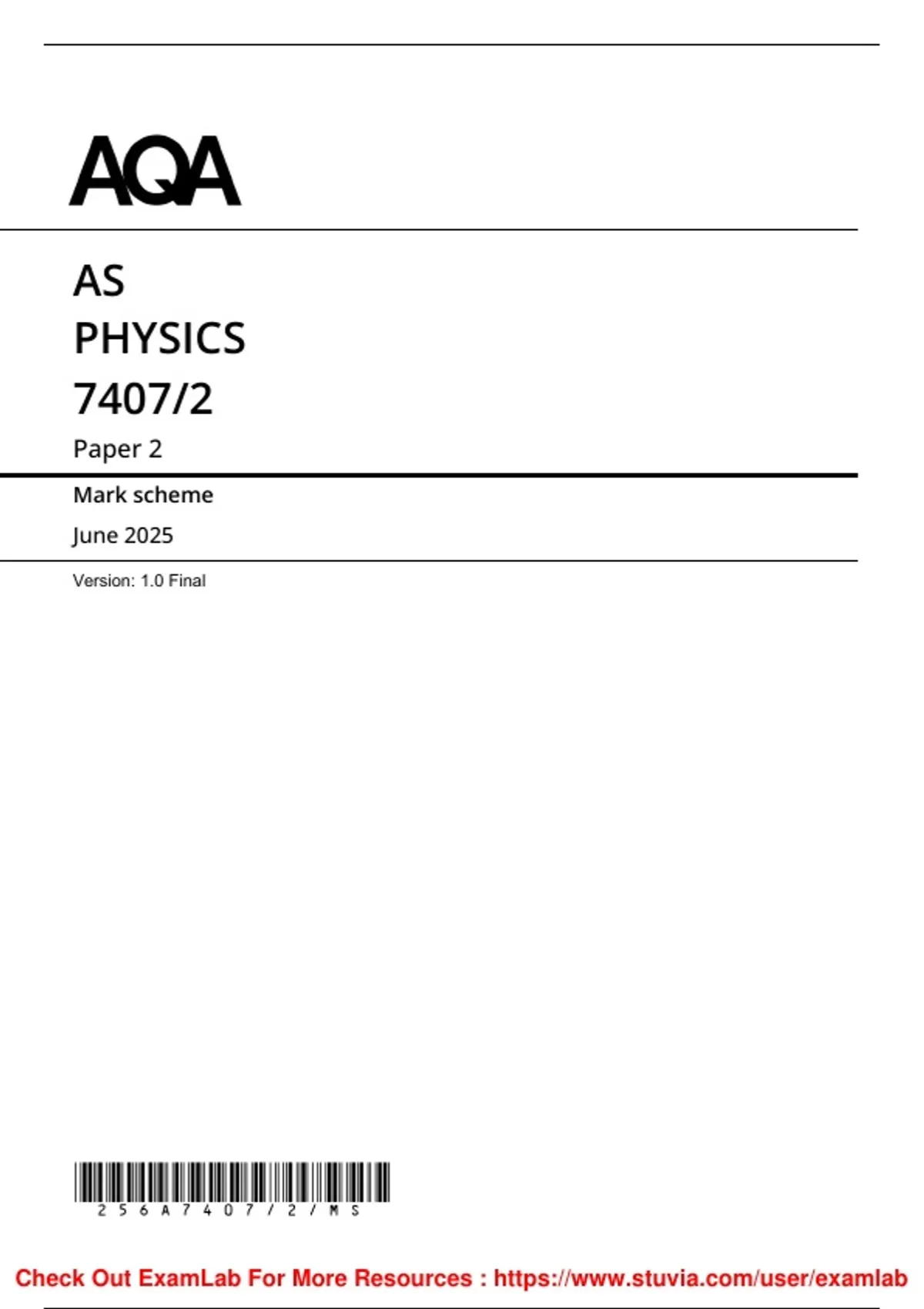 , MARK SCHEME – AS PHYSICS – 7407/2 – JUNE 2025