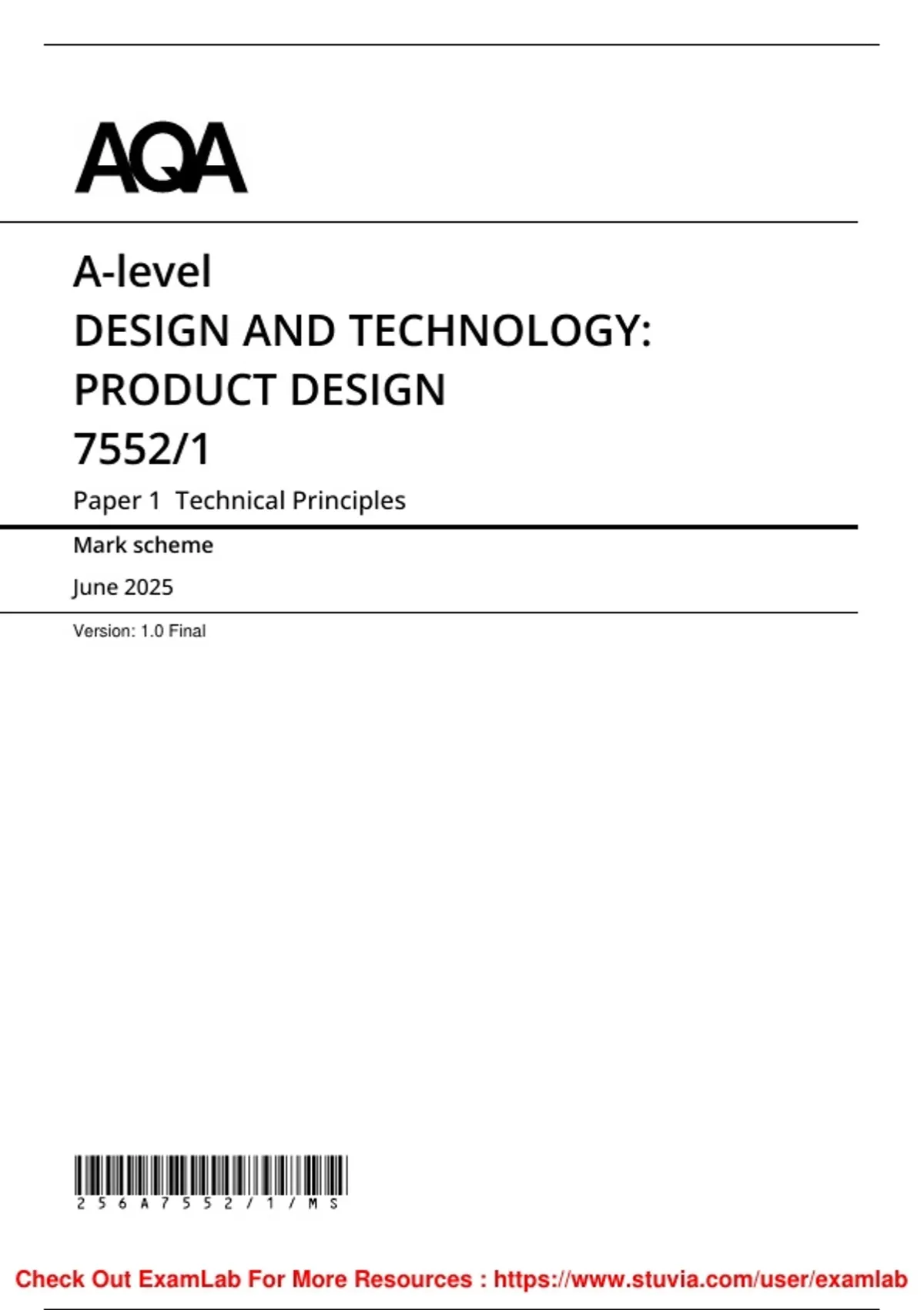 , MARK SCHEME – A-LEVEL DESIGN AND TECHNOLOGY: PRODUCT DESIGN – 7552/1 – JUNE 2025