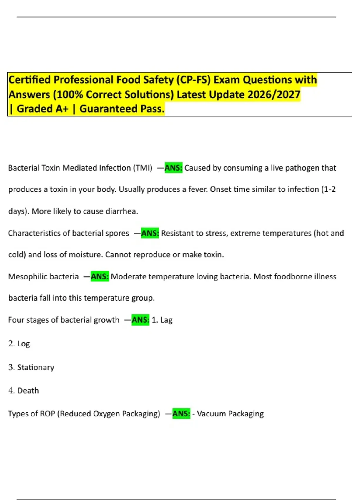 Types of ROP (Reduced Oxygen Packaging) —ANS: - Vacuum Packaging