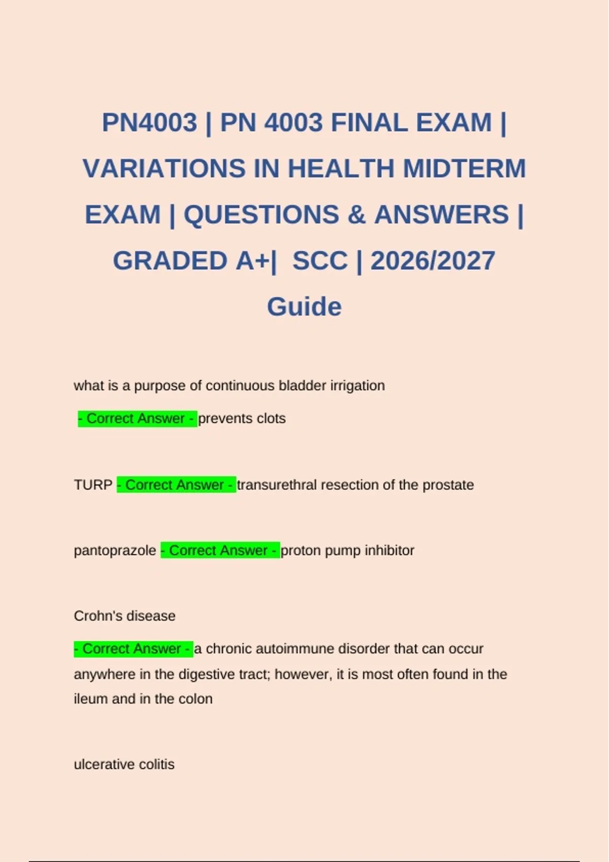 PN4003 | PN 4003 FINAL EXAM |