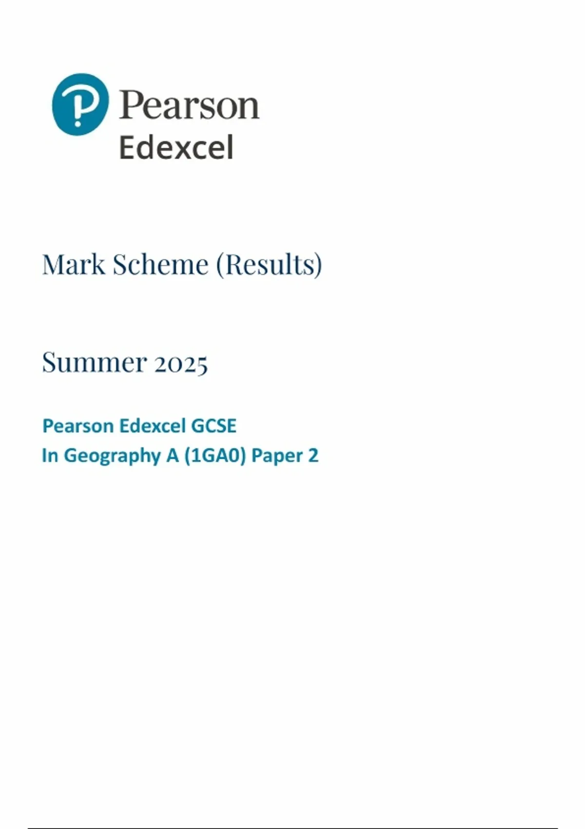 - 2025 Pearson Edexcel GCSE Geography A PAPER 2 MAR