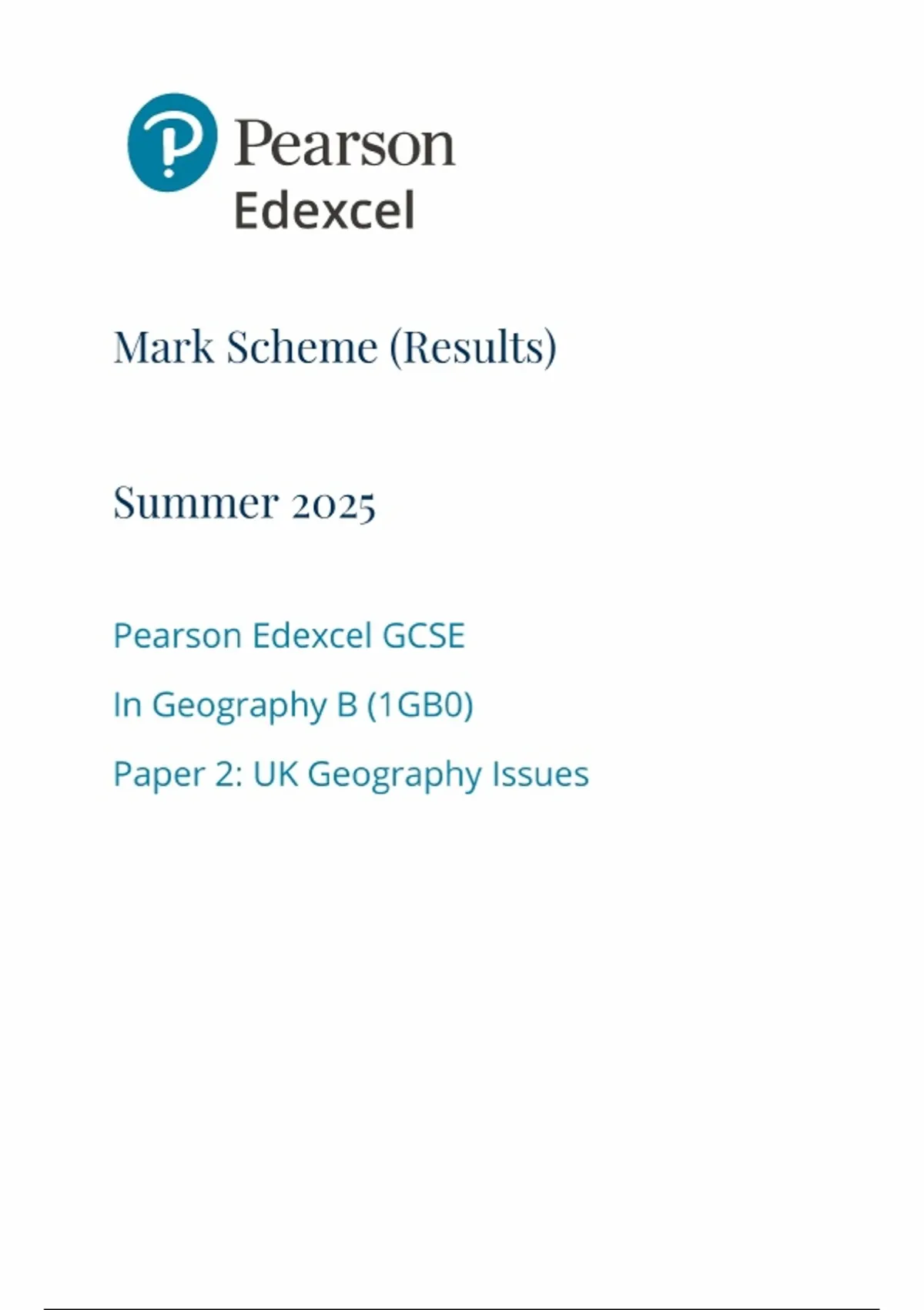 2025 Pearson Edexcel GCSE Geography B PAPER 2 1GB0/02 MARK SCHEME: UK Geographical Issues