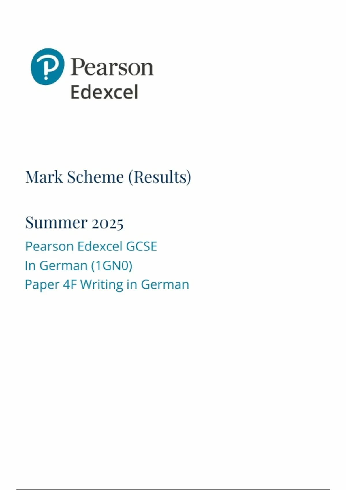 2025 Pearson Edexcel GCSE German PAPER 4 MARK SCHEME 1GN0/4F: Writing in German