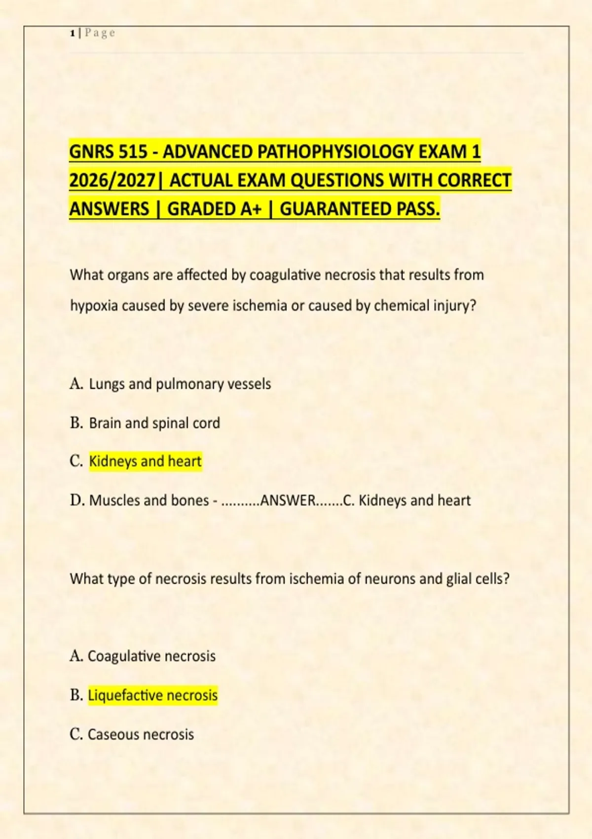 GNRS 515 - ADVANCED PATHOPHYSIOLOGY EXAM 1
