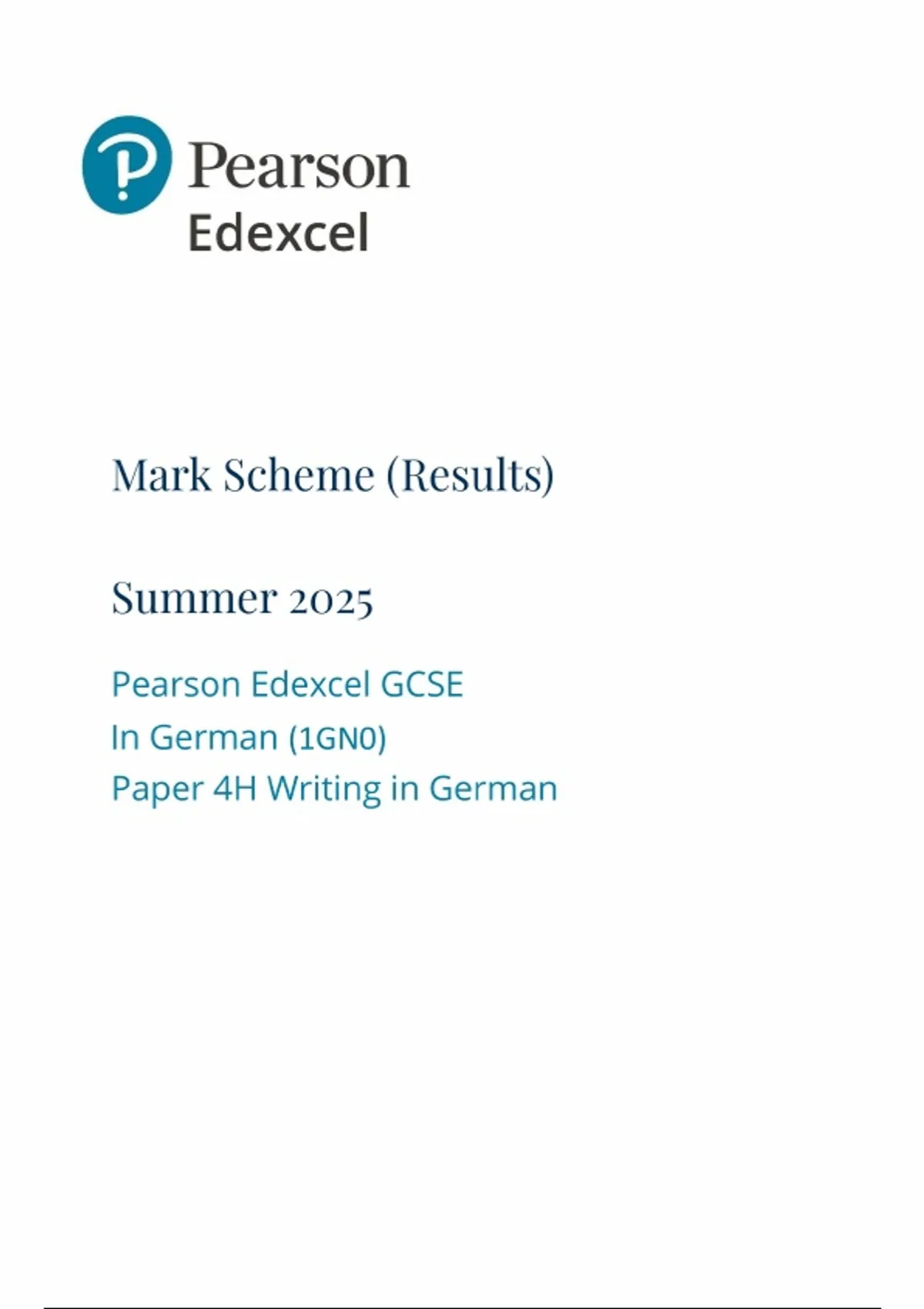 2025 Pearson Edexcel GCSE German PAPER 4H MARK SCHEME 1GN0/4H: Writing in German
