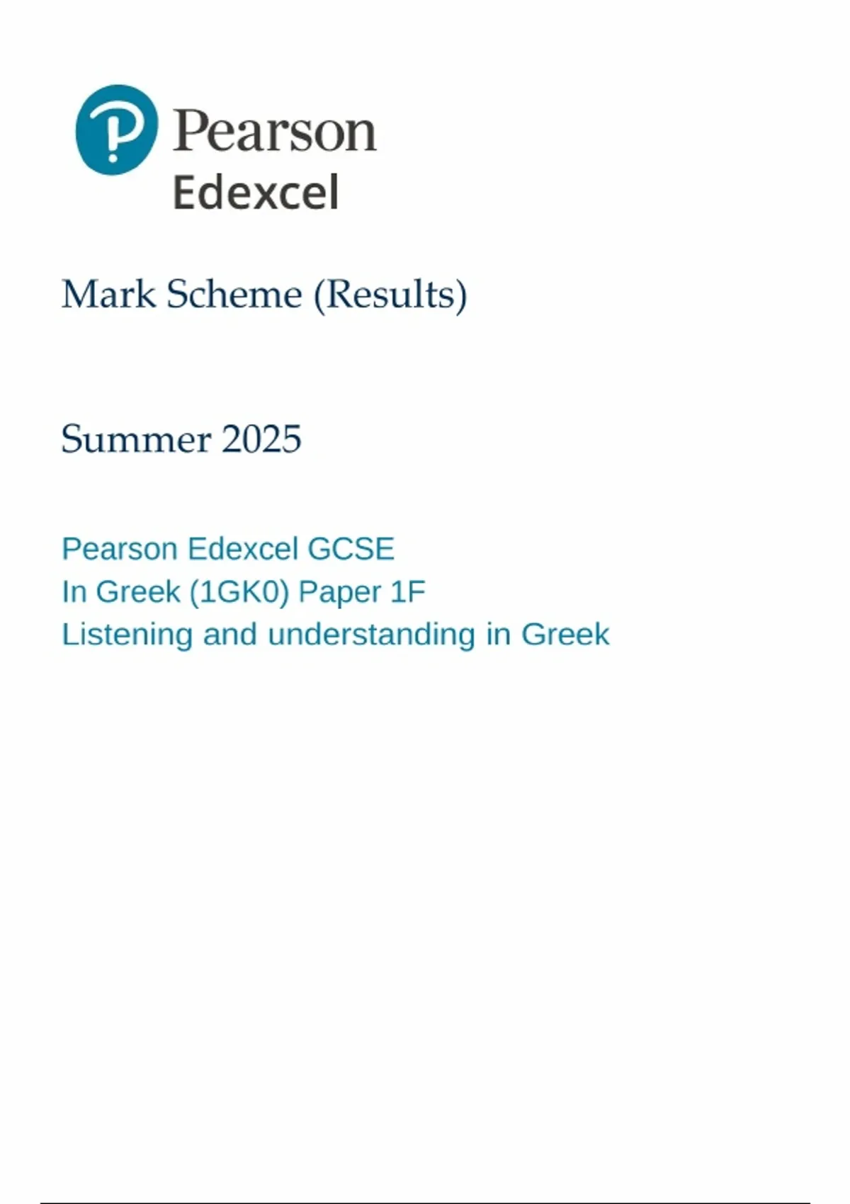 2025 Pearson Edexcel GCSE Greek PAPER 1 MARK SCHEME 1GK0/1F