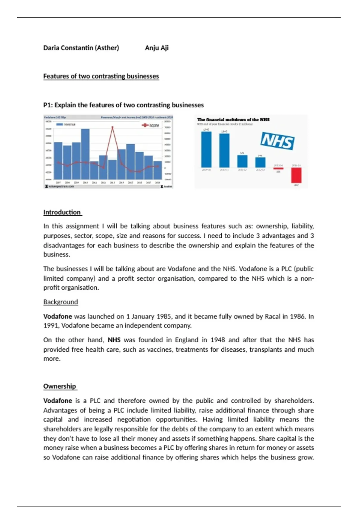 Unit 1 Assignment 1 Level 3 BTEC Business Vodafone and NHS DISTINCTION