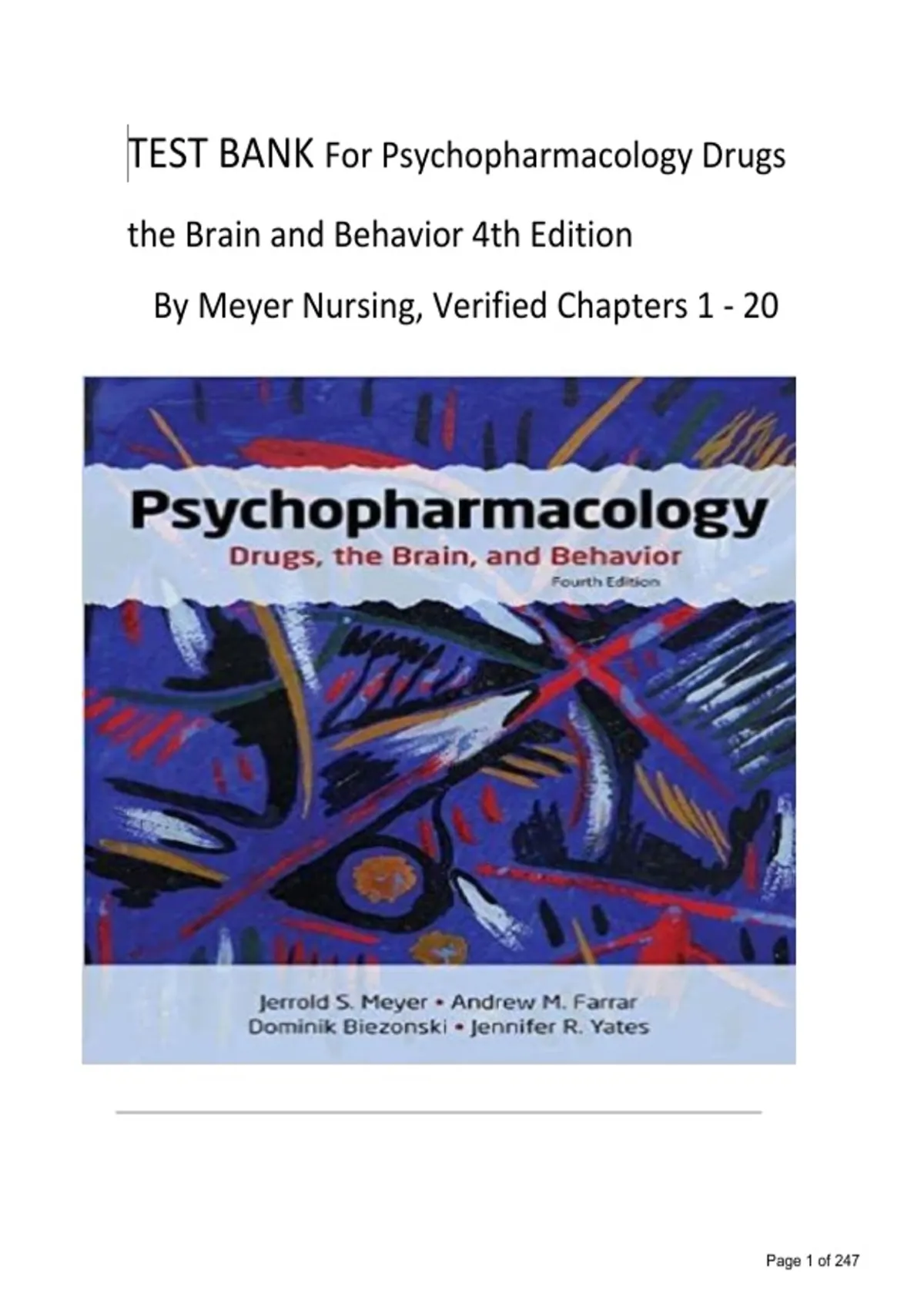 TEST BANK For Psychopharmacology Drugs