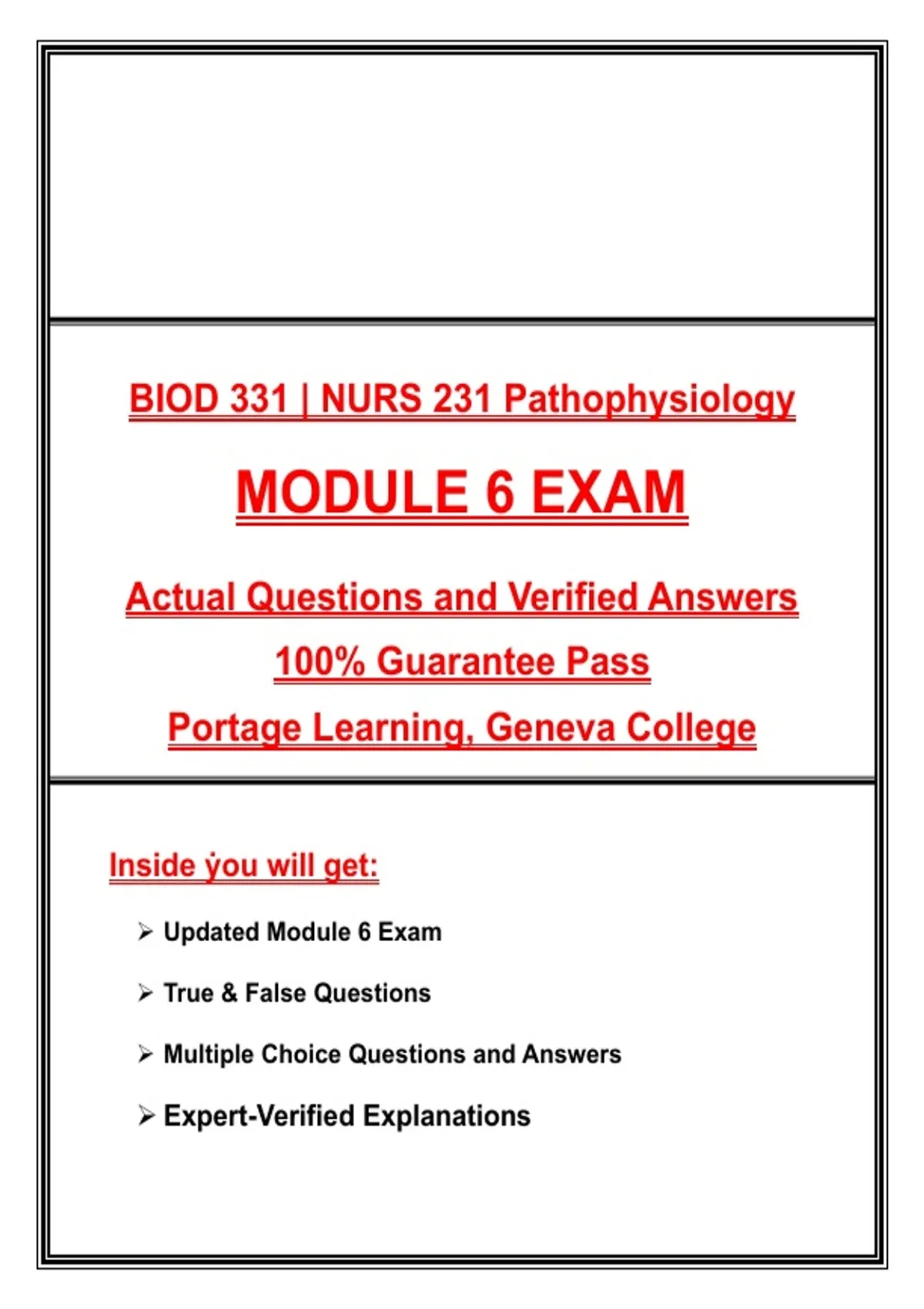 BIOD 331 | NURS 231 Pathophysiology MODULE 6 EXAM Actual Questions and Verified Answers | 100% Guarantee Pass - Portage Learning.