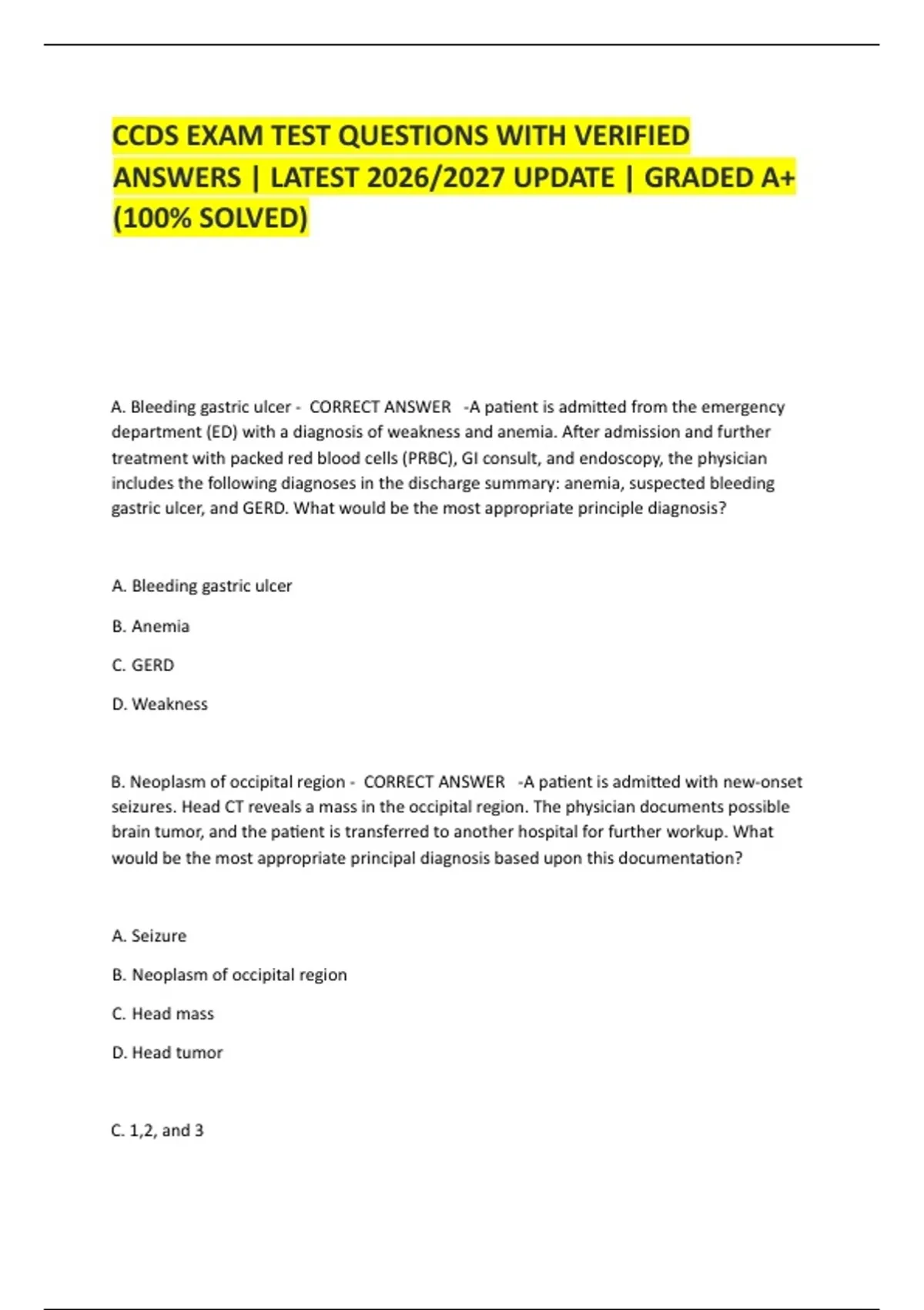 A. Bleeding gastric ulcer - CORRECT ANSWER -A patient is admitted from the emergency