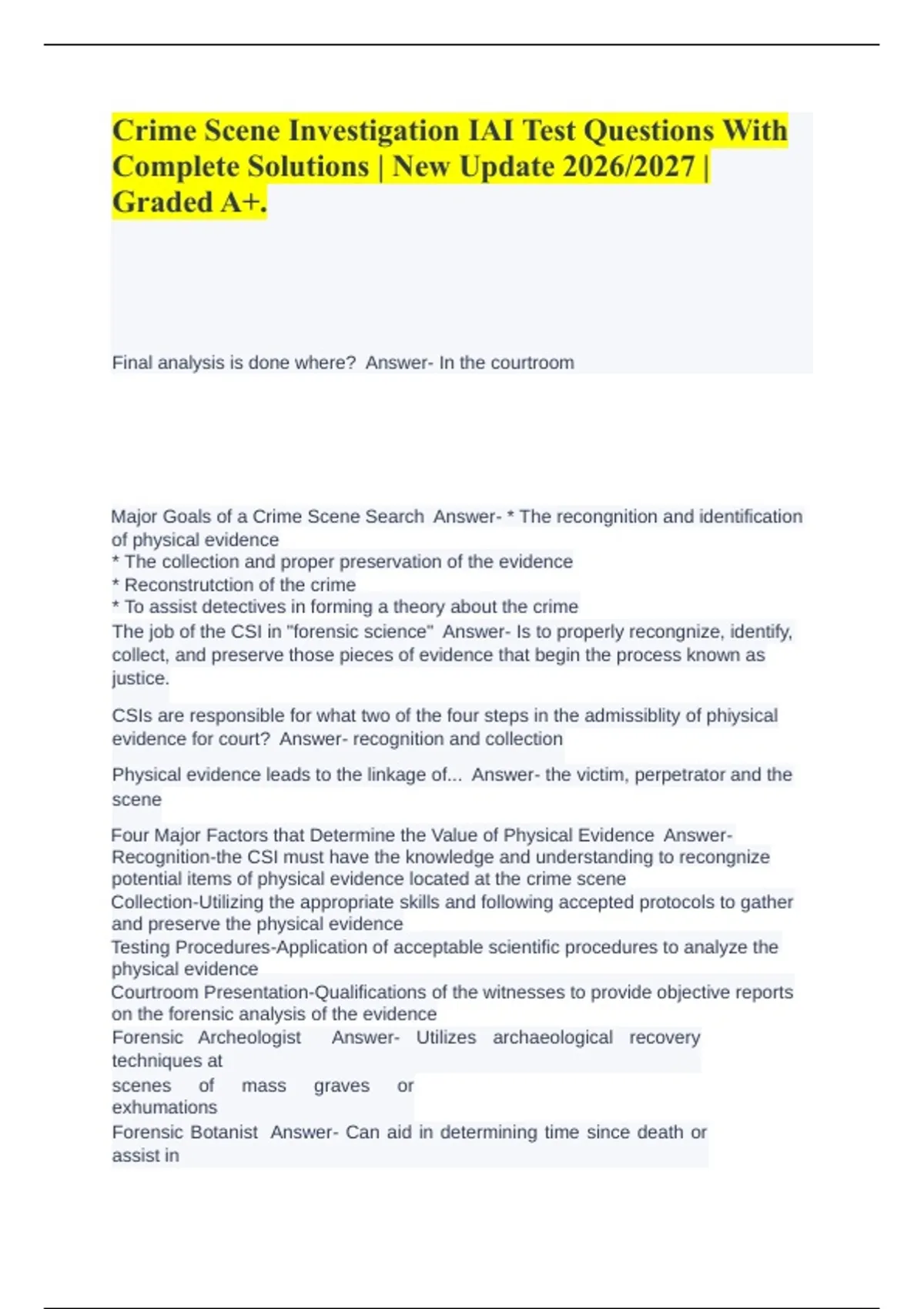 The job of the CSI in "forensic science" Answer- Is to properly recongnize, identify,