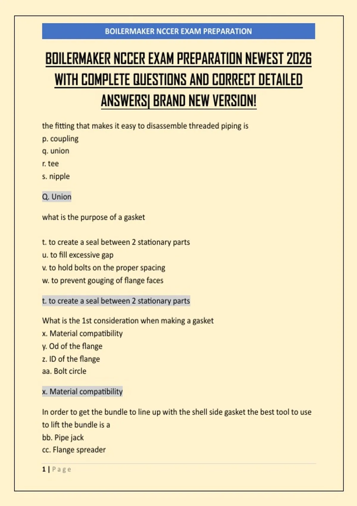 BOILERMAKER NCCER EXAM PREPARATION NEWEST 2026 WITH COMPLETE QUESTIONS AND CORRECT DETAILED ANSWERS| BRAND NEW VERSION!