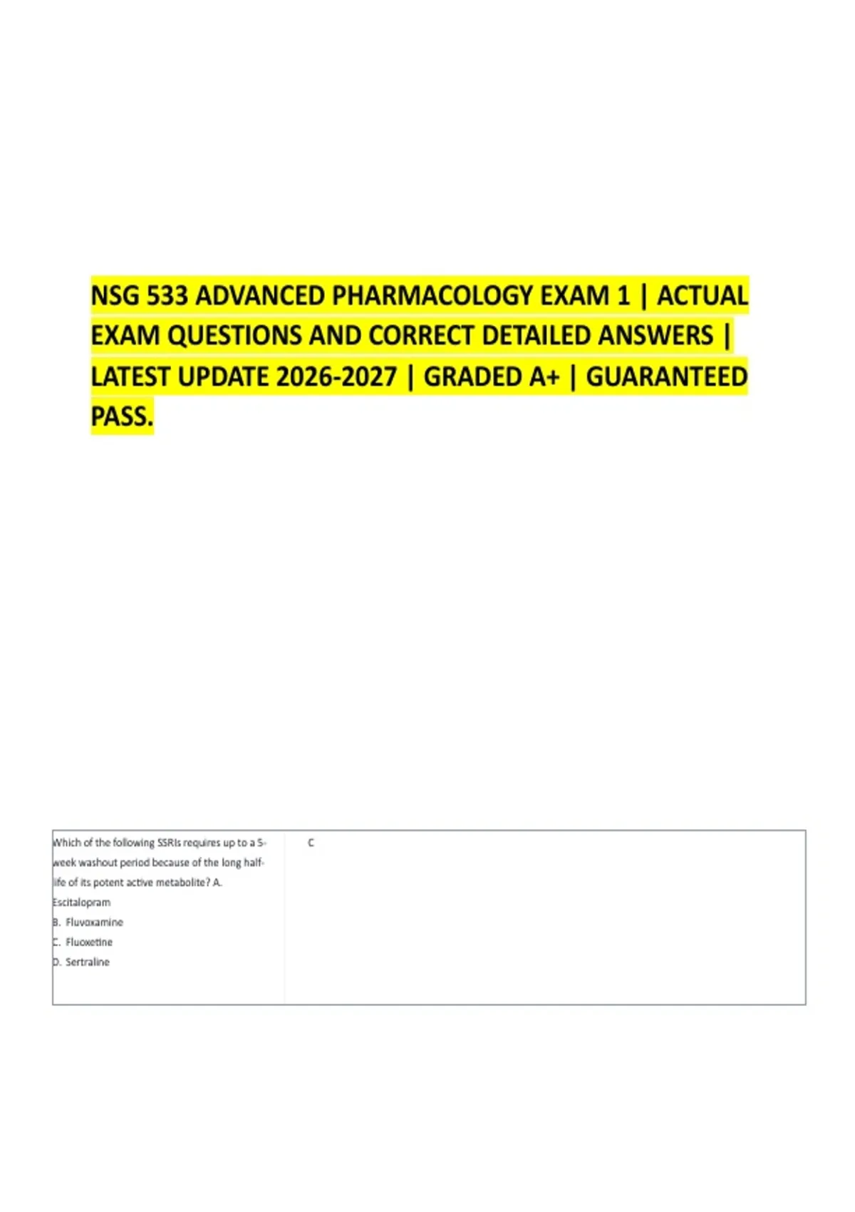 NSG 533 ADVANCED PHARMACOLOGY EXAM 1 | ACTUAL EXAM QUESTIONS AND CORRECT DETAILED ANSWERS | LATEST UPDATE | GRADED A+ | GUARANTEED PASS.