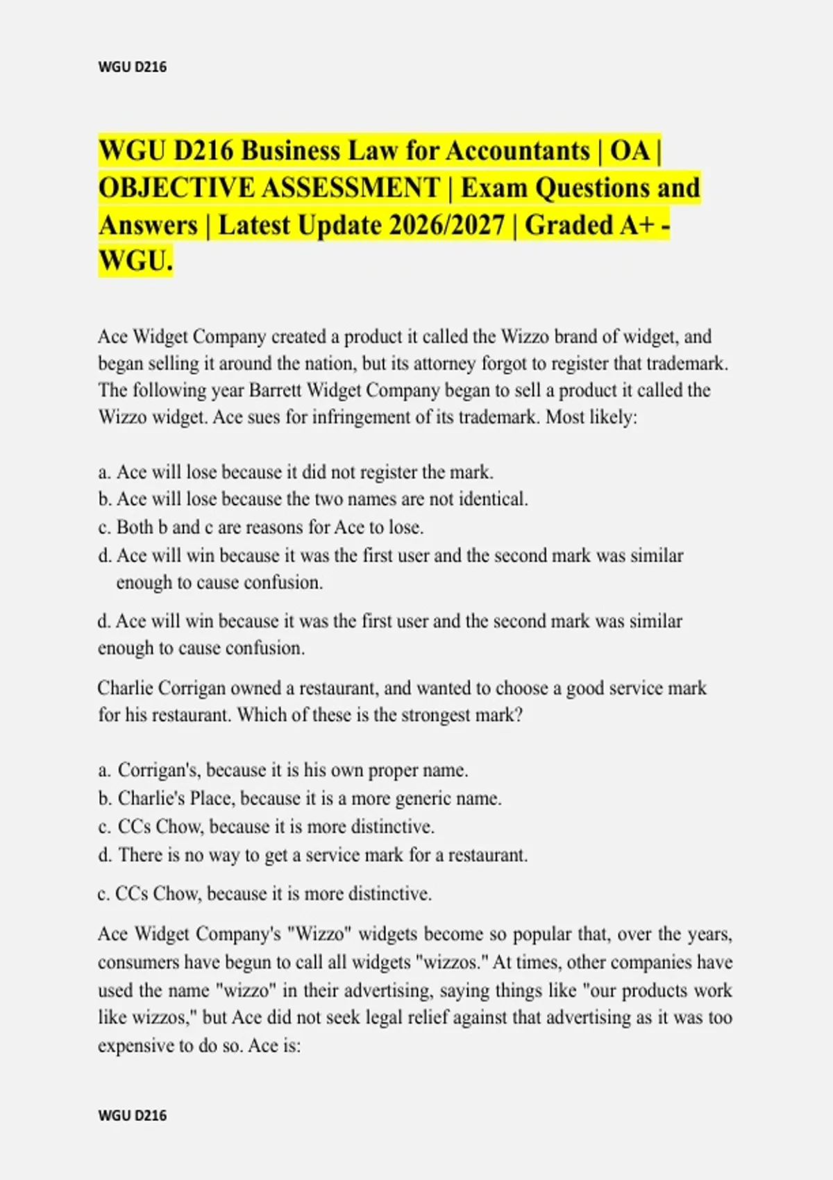 Ace Widget Company created a product it called the Wizzo brand of widget, and