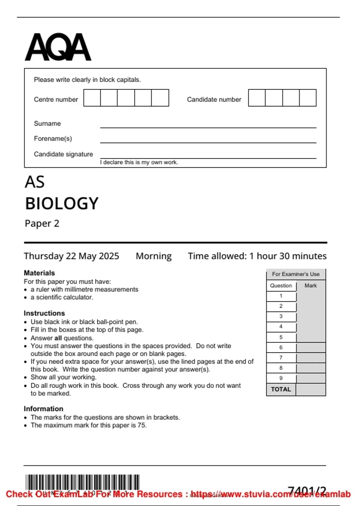 AS Level Biology AQA Paper 2 + Mark Scheme 2025