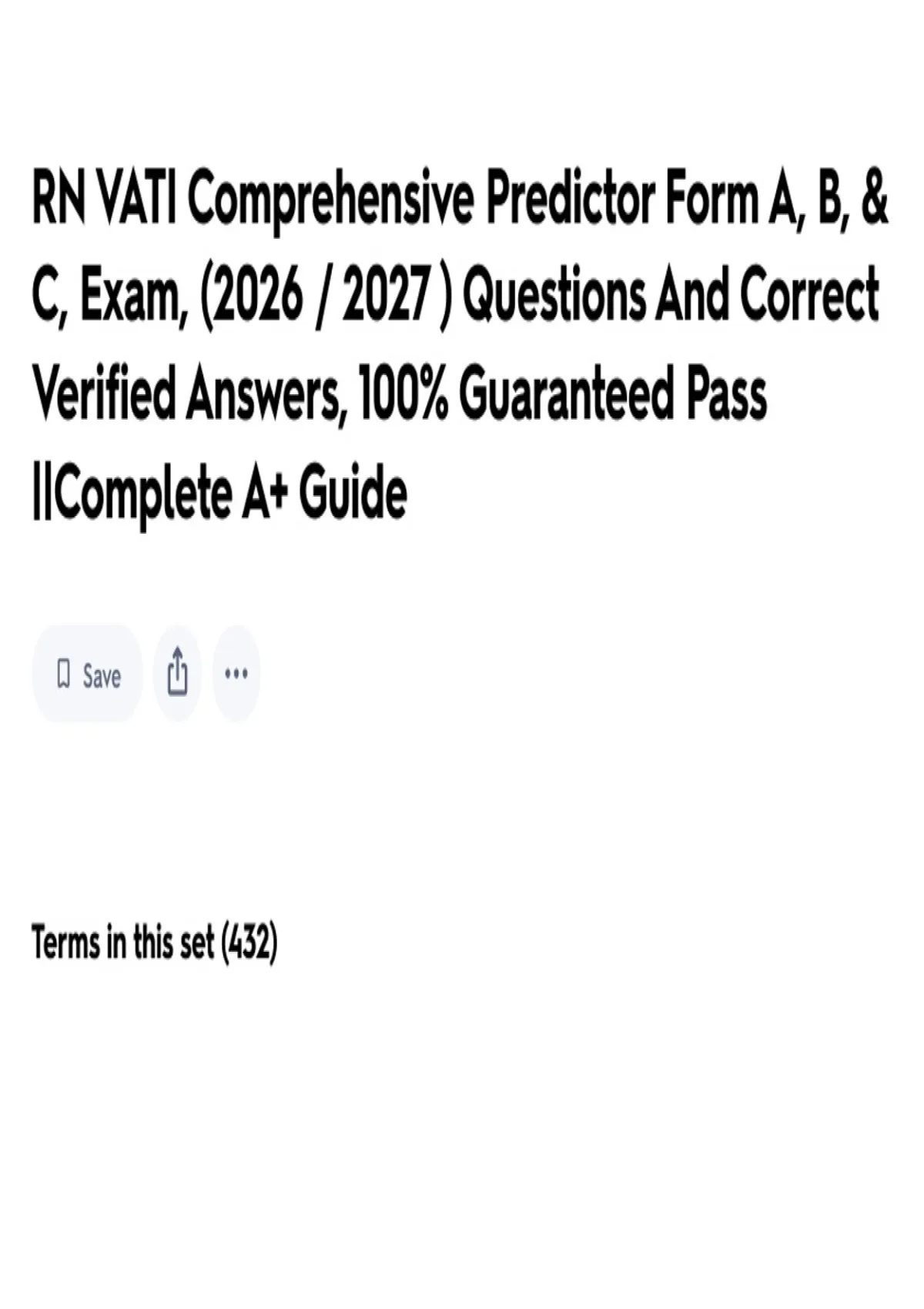 RN VATI Comprehensive Predictor Form A, B, & C, Exam, ( ) Questions And Correct Verified Answers, 100% Guaranteed Pass -Complete A+ Guide