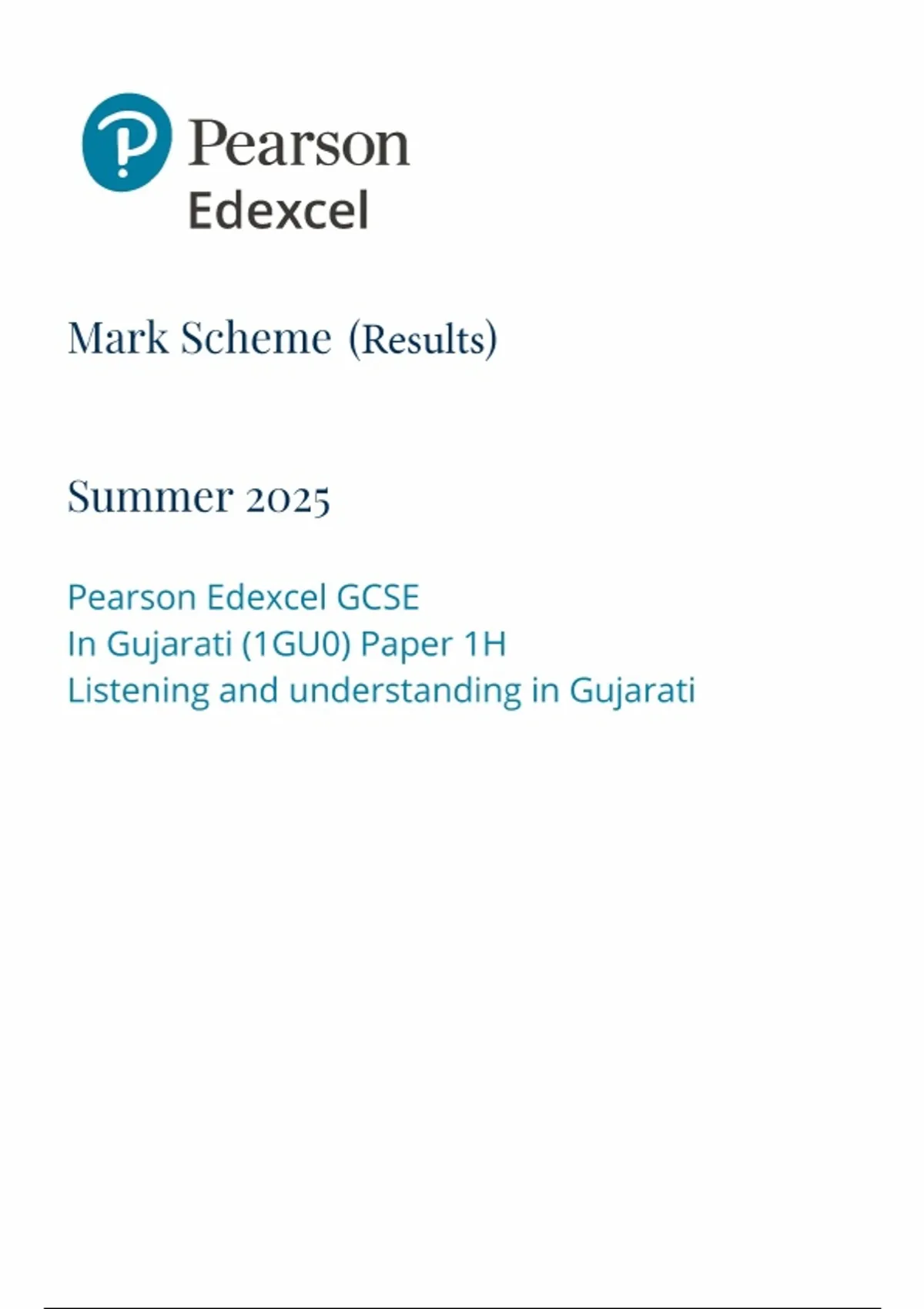 2025 Pearson Edexcel GCSE Gujarati PAPER 1 MARK SCHEME 1GU0/1H : Listening and understanding in Gujarati