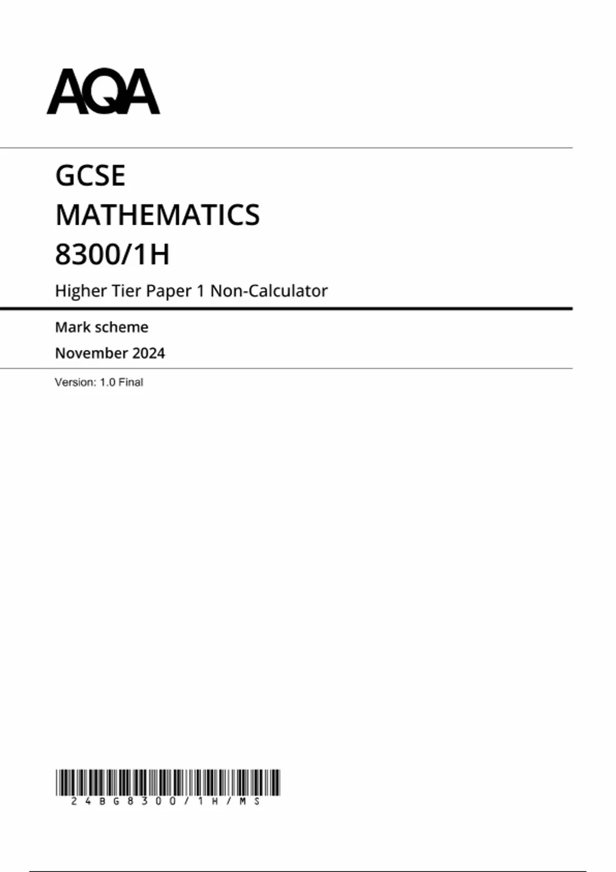 2025 AQA GCSE MATHEMATICS Higher Tier PAPER 1 MARK SCHEME 8300/1H :Non-Calculator