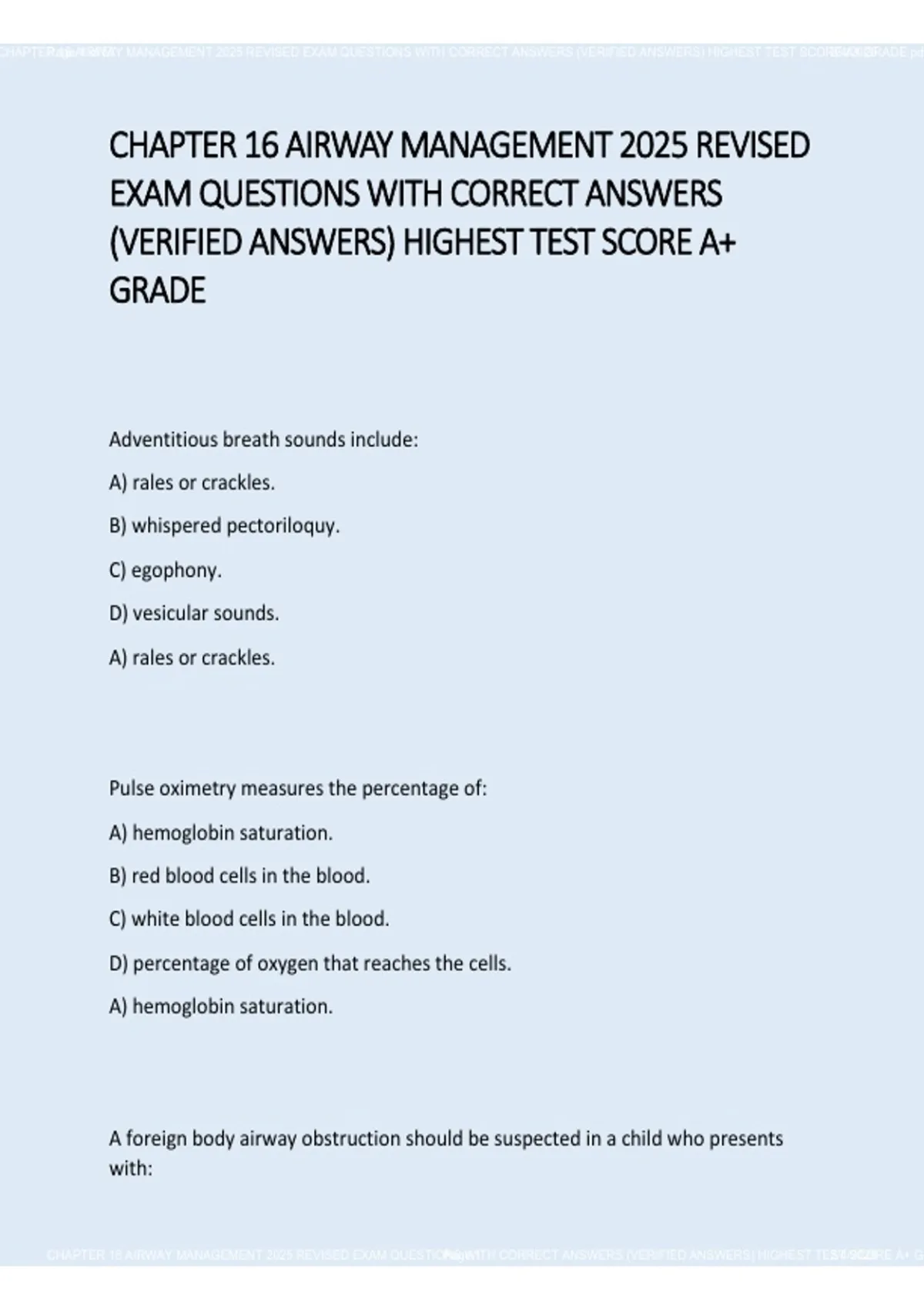 CHAPTER 16 AIRWAY MANAGEMENT 2025 REVISED EXAM QUESTIONS