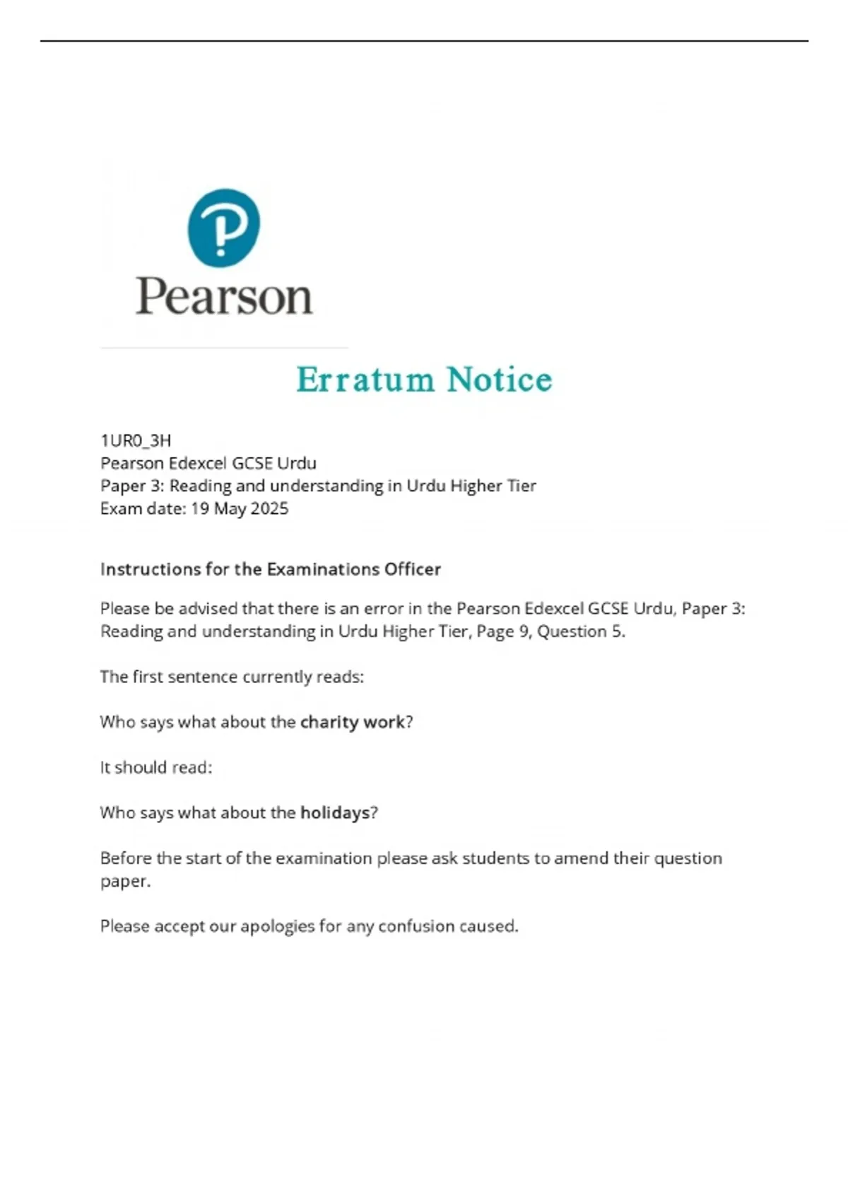 Pearson Edexcel GCSE Urdu Paper 3: Reading and understanding in Urdu Higher Tier Exam date: 19 May 2025 Combined Question Paper and Marking Scheme