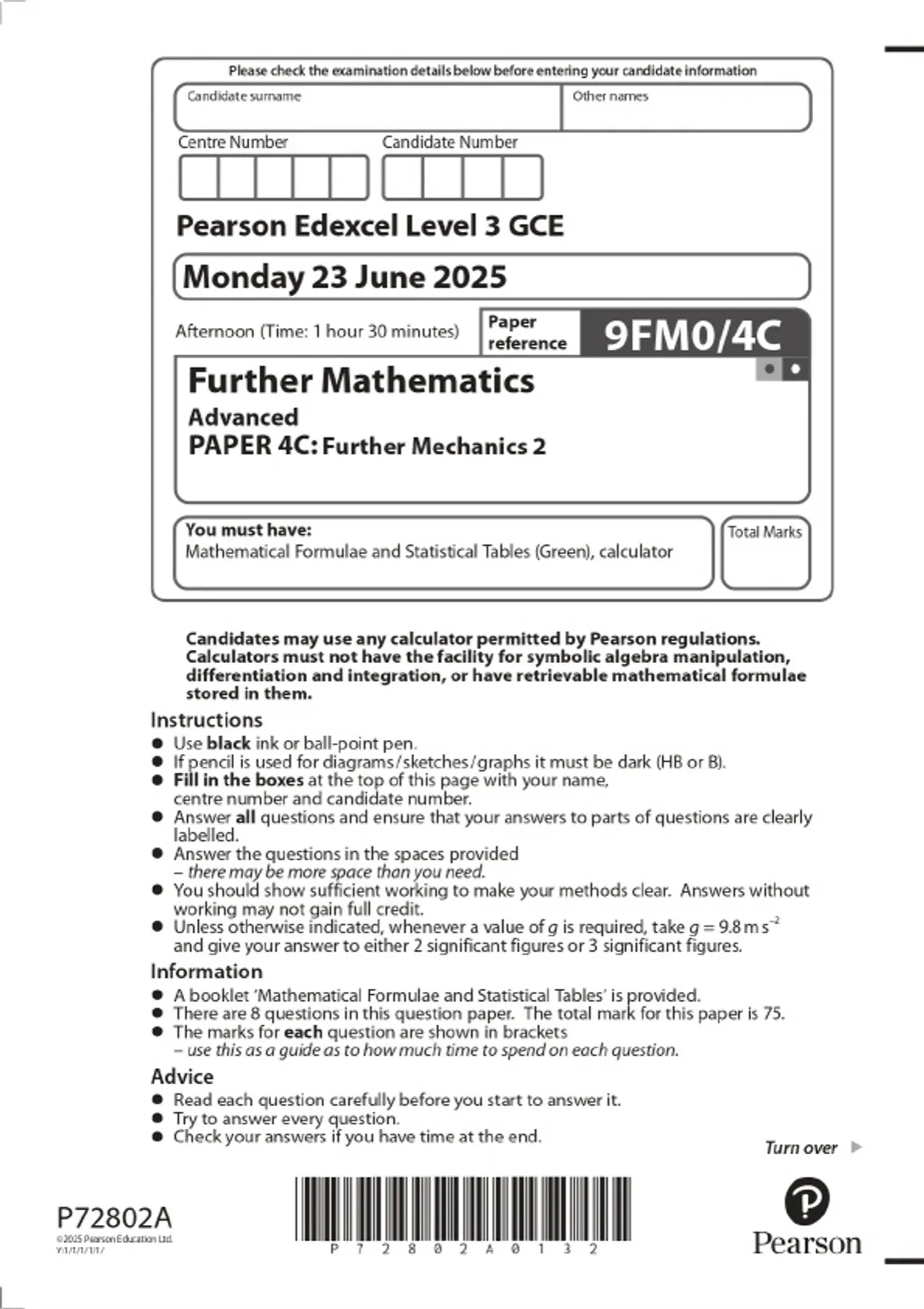 2025 pearson edexcel level 3 gce further