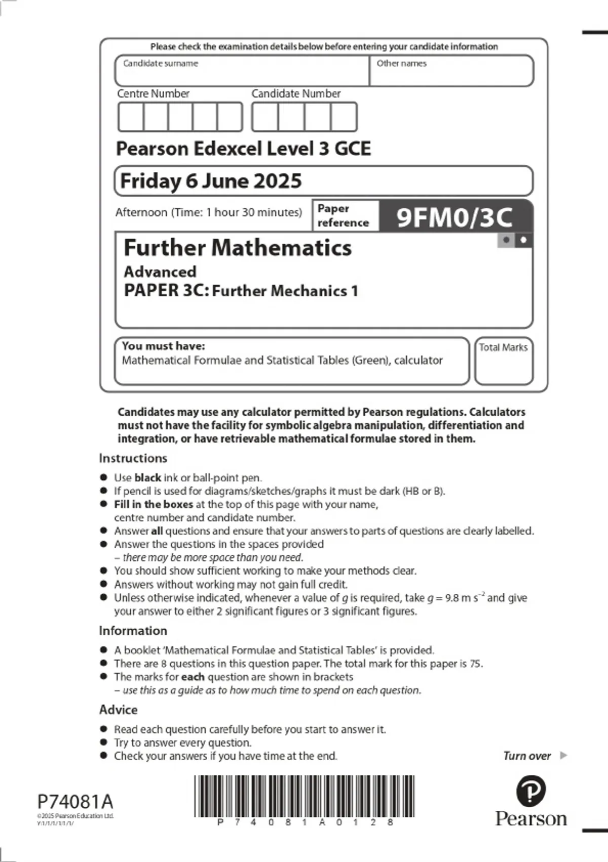 2025 pearson edexcel level 3 gce further