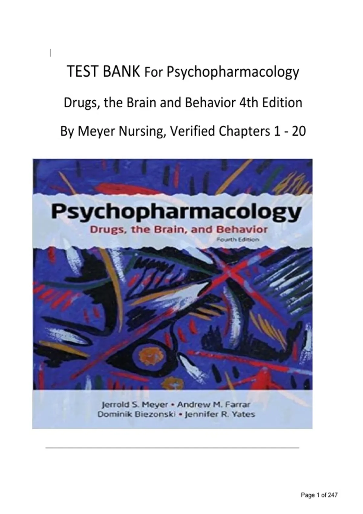 TEST BANK For Psychopharmacology Drugs, the Brain and Behavior 4th Edition By Meyer Nursing,Verified Chapters 1_20. TEST BANK For Psychopharmacology Drugs, the Brain and Behavior 4th Edition By Meyer Nursing,Verified Chapters 1_20. TEST BANK For Psychopharmacology Drugs, the Brain and Behavior 4th Edition By Meyer Nursing,Verified Chapters 1_20