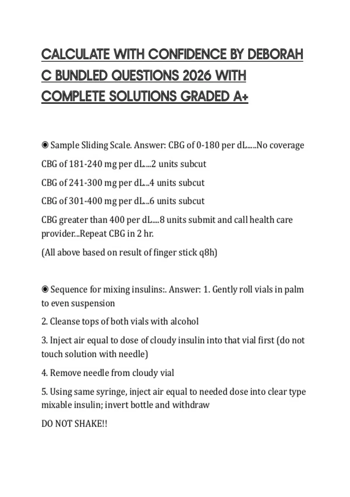 CALCULATE WITH CONFIDENCE BY DEBORAH C BUNDLED QUESTIONS 2026 WITH COMPLETE SOLUTIONS GRADED A+