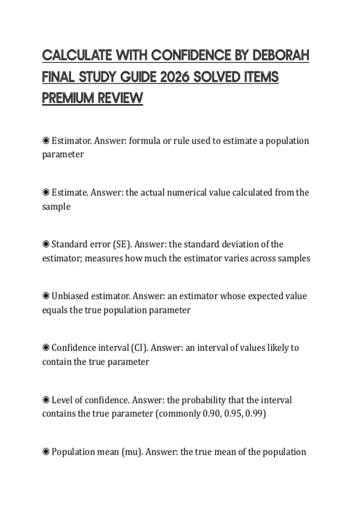 CALCULATE WITH CONFIDENCE BY DEBORAH FINAL STUDY GUIDE 2026 SOLVED ITEMS PREMIUM REVIEW