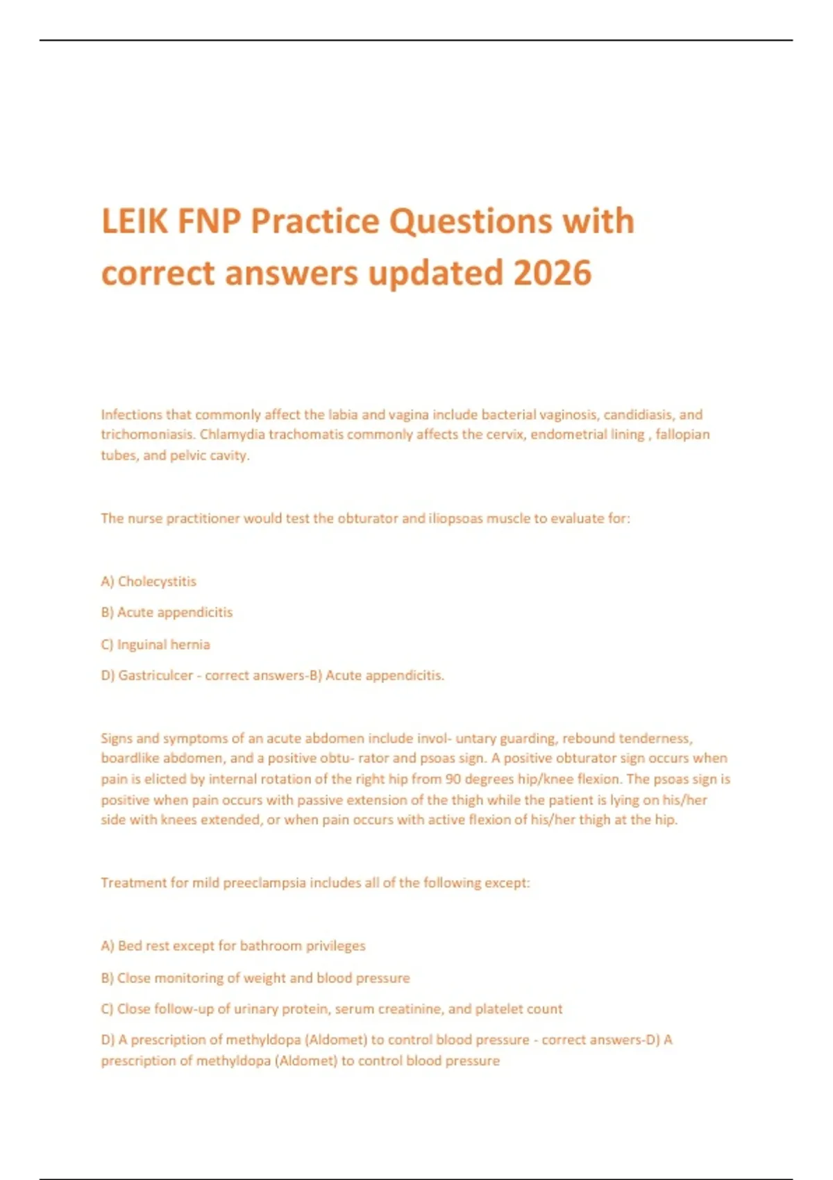 D) Gastriculcer - correct answers-B) Acute appendicitis.