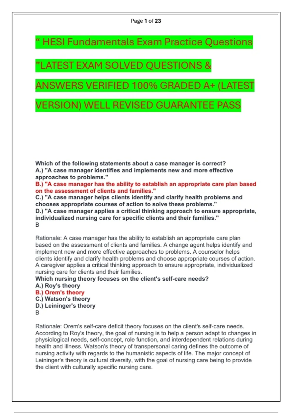 ANSWERS VERIFIED 100% GRADED A+ (LATEST