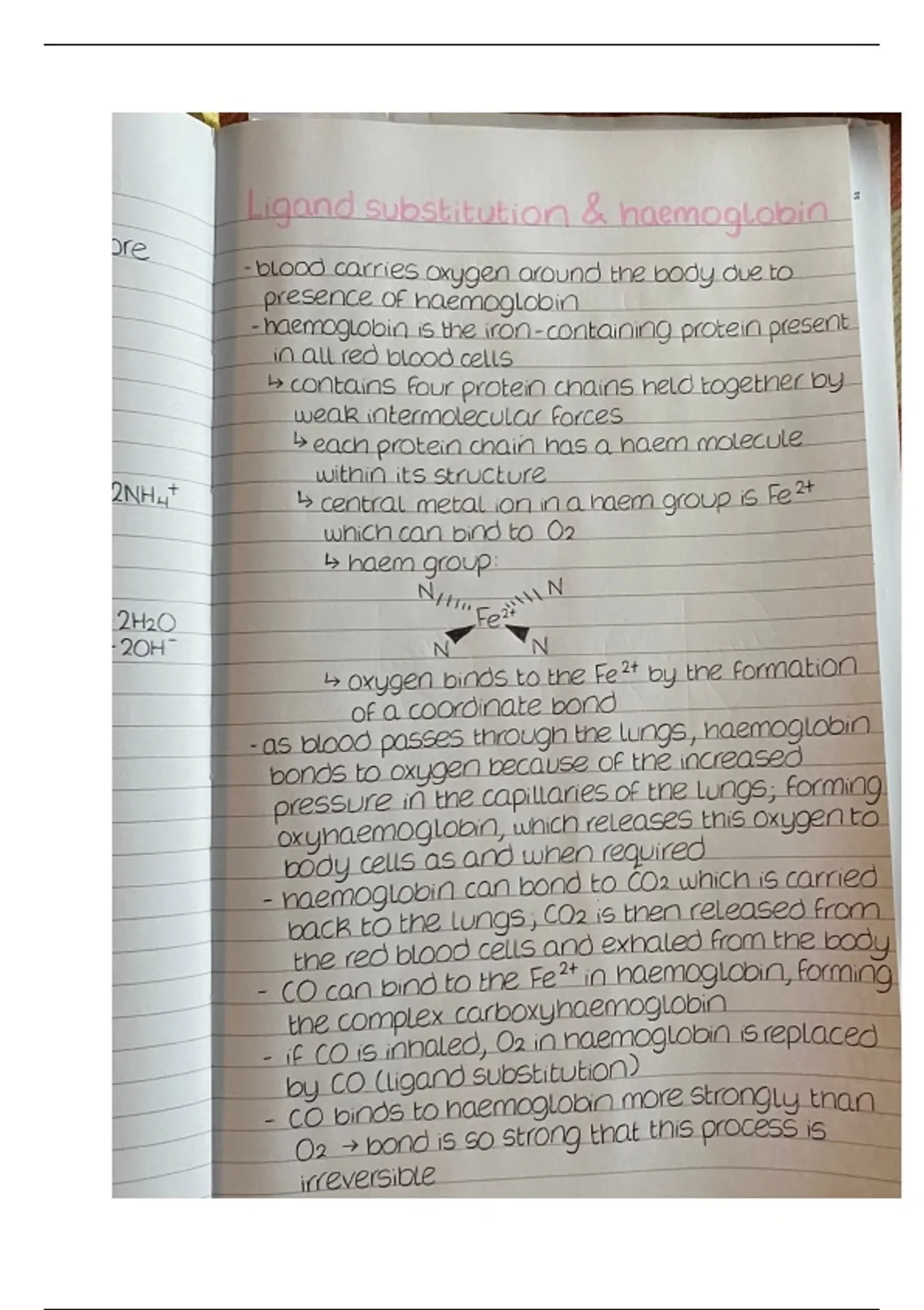 Ligand substitution and haemoglobin summary notes from module 5
