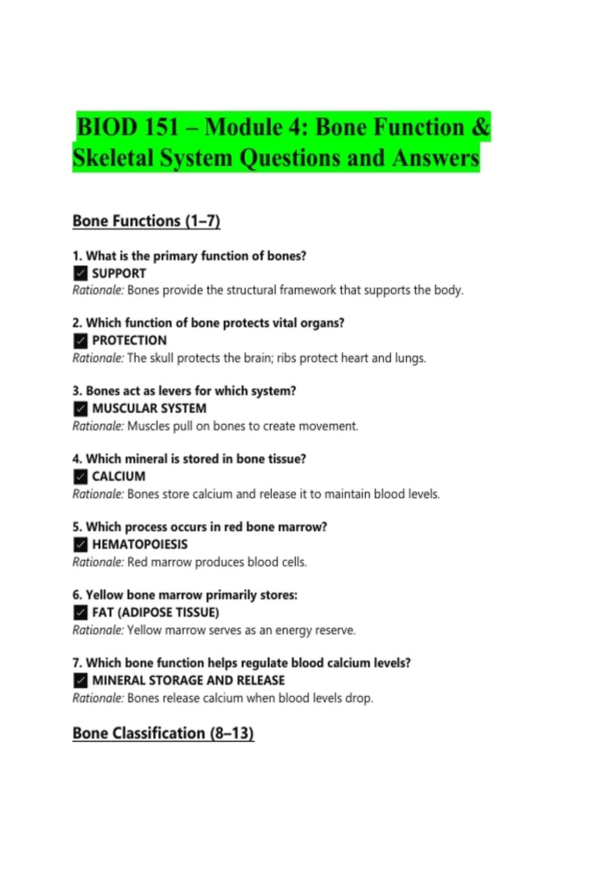 Rationale: Bones store calcium and release it to maintain blood levels.