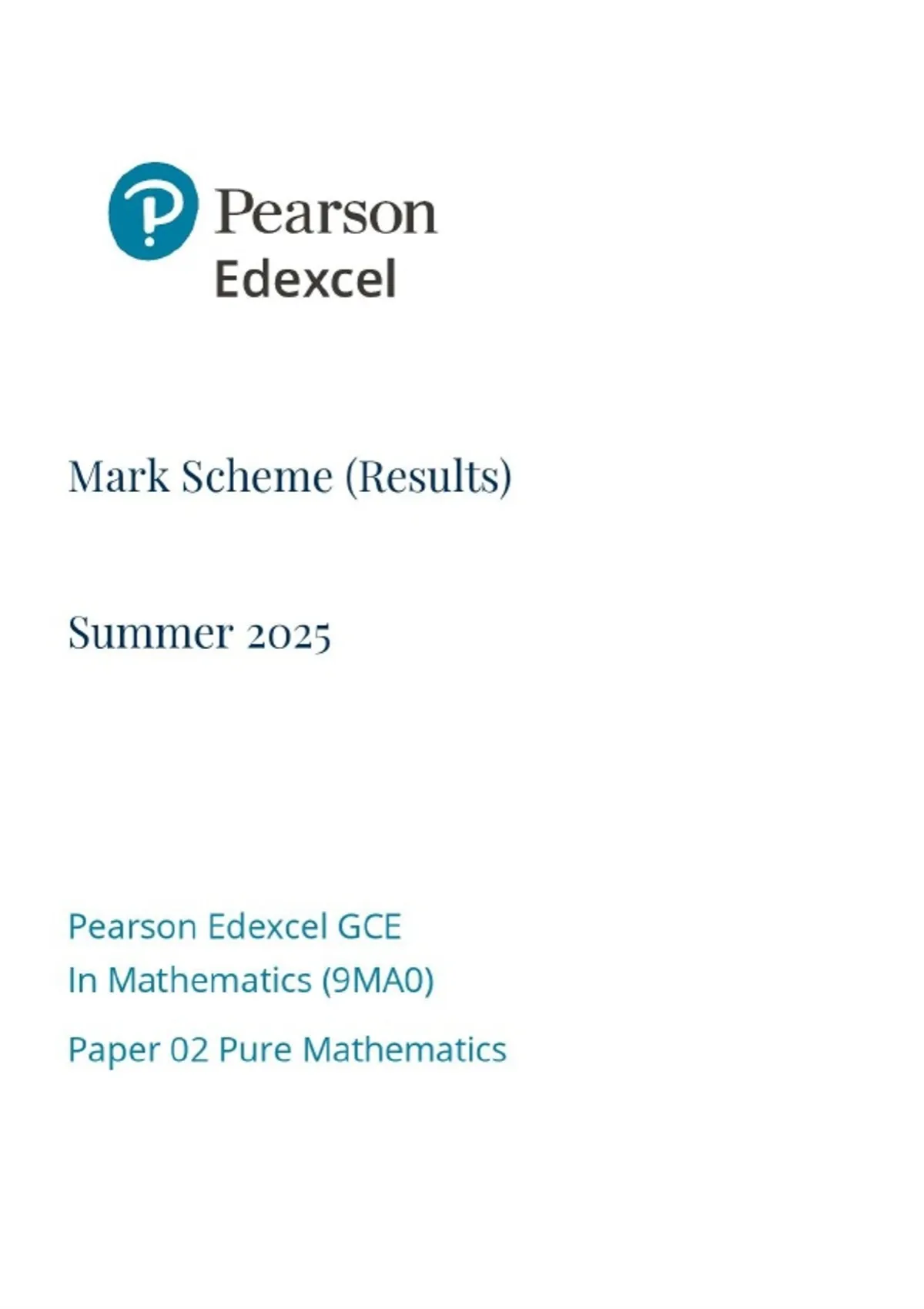 2025 A-LEVEL EDEXCEL MATHEMATICS PAPER 2 MARK SCHEME