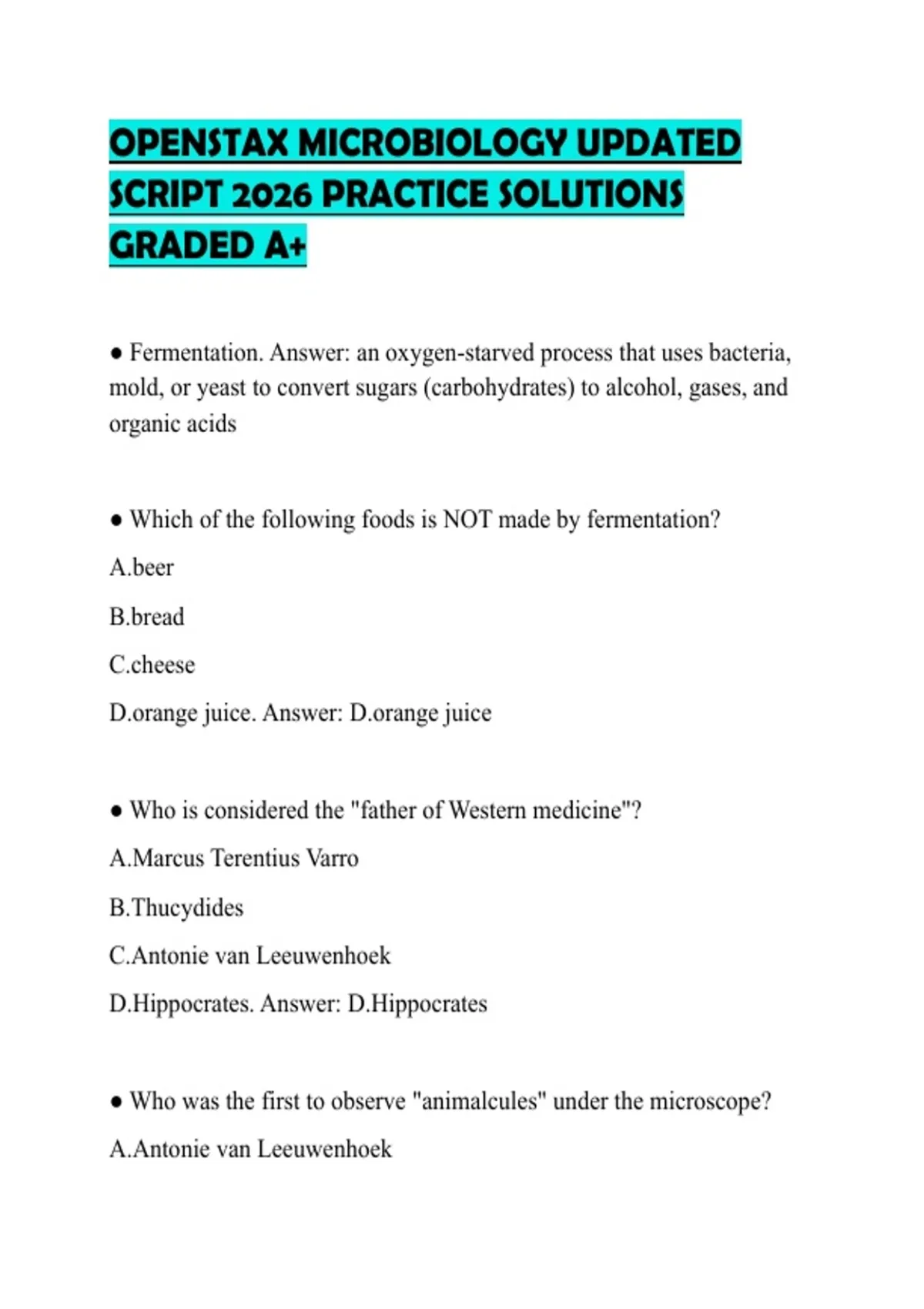 OPENSTAX MICROBIOLOGY UPDATED SCRIPT 2026 PRACTICE SOLUTIONS GRADED A+