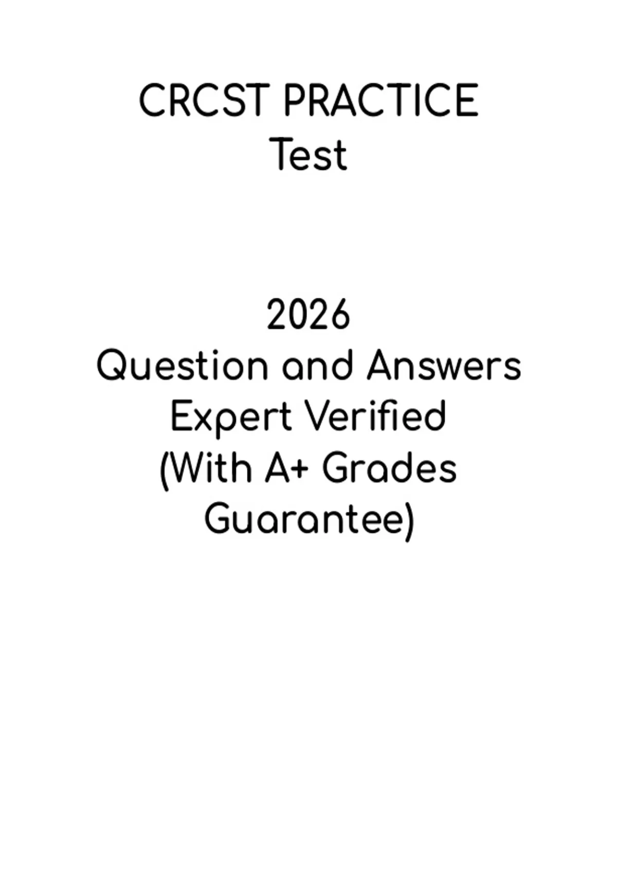 This document provides a comprehensive practice test for CRCST (Certified Registered Central Service Technician) exam preparation. It includes practice questions, review notes, and key concepts covering sterile processing, infection control, surgical instrumentation, and central service operations. Designed for students and professionals preparing for CRCST certification, this guide helps reinforce knowledge, improve exam readiness, and develop practical skills essential for success. Ideal for self-study and certification exam preparation, it supports learners in confidently passing the CRCST exam.
