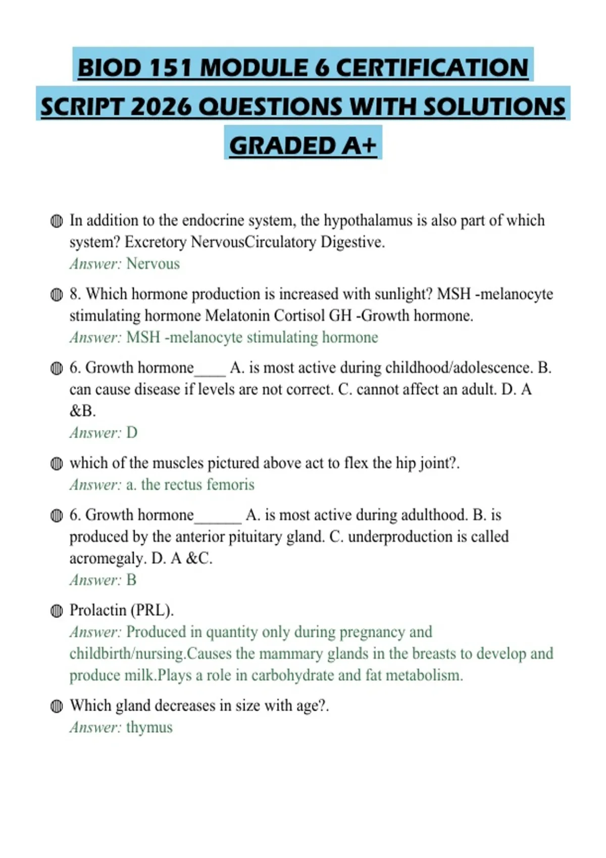 BIOD 151 MODULE 6 CERTIFICATION SCRIPT 2026 QUESTIONS WITH SOLUTIONS GRADED A+