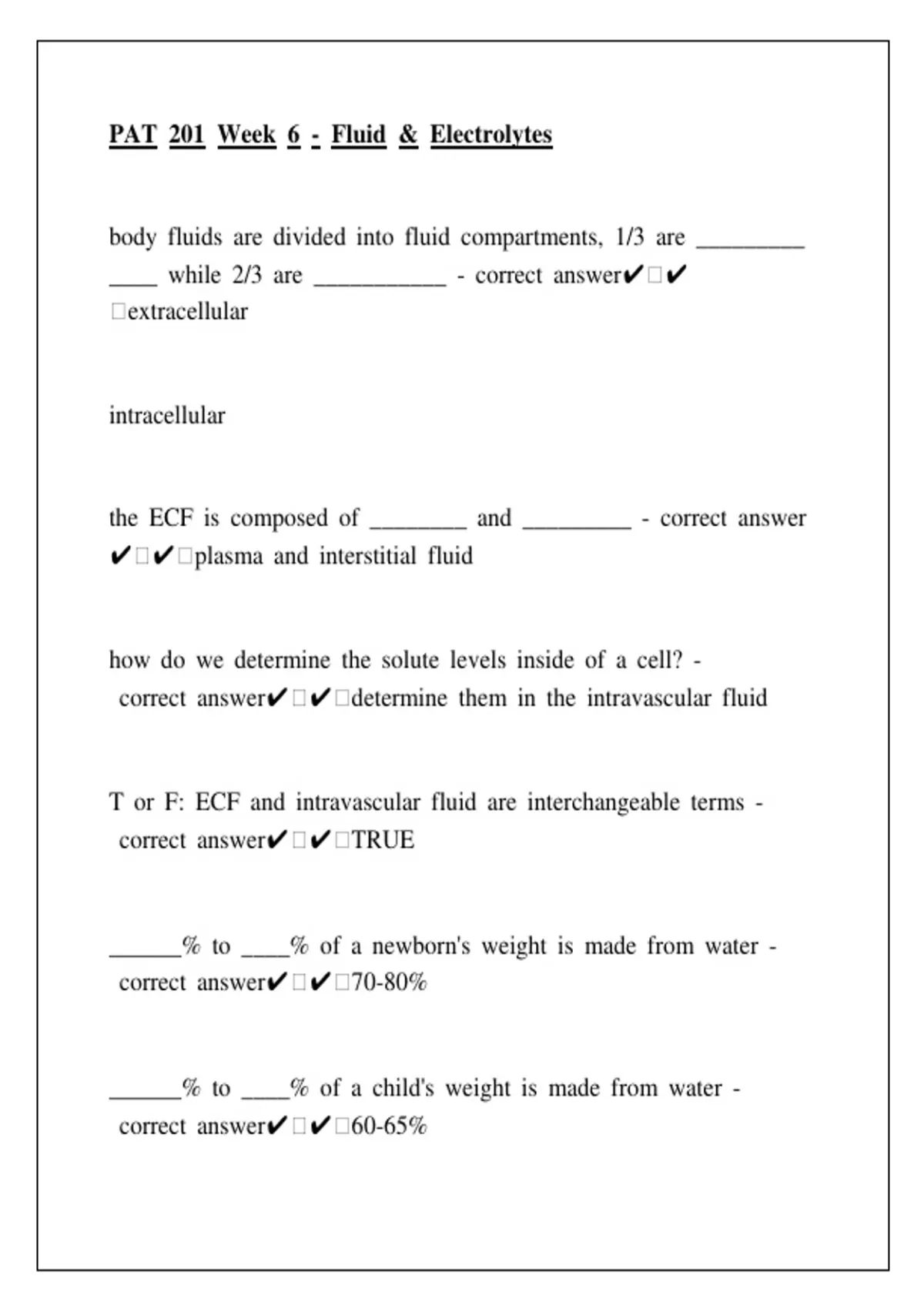 PAT 201 Week 6 Fluid & Electrolyte Notes – Study Guide & Exam Prep
