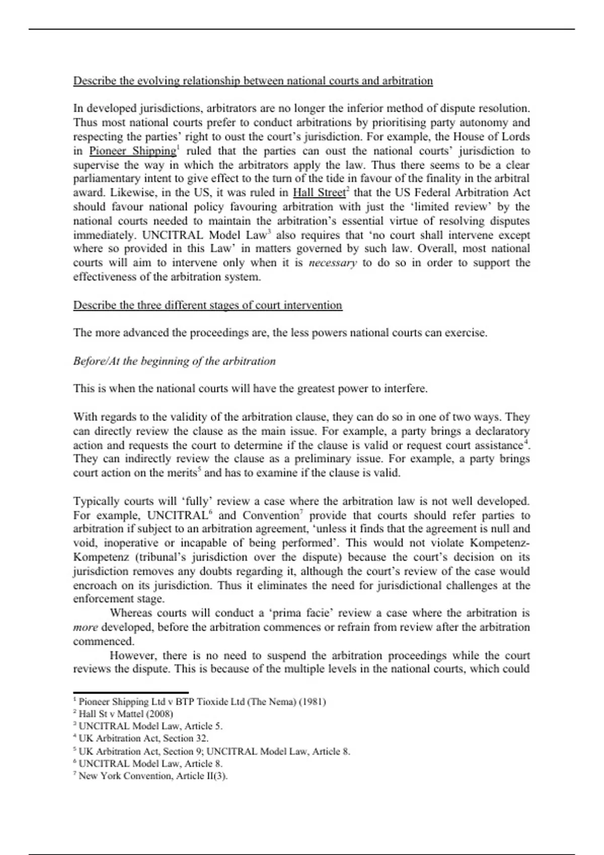 Summary LLM International Dispute Resolution - International Commercial Arbitration I - Module 8 (National Courts in Arbitration)
