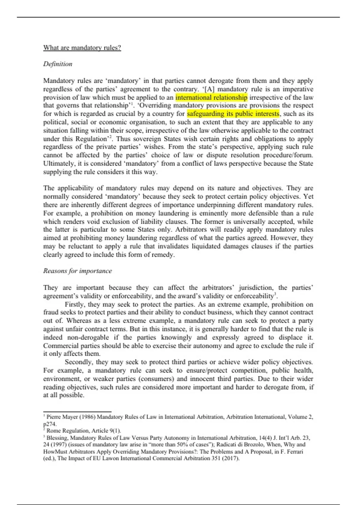 Pierre Mayer (1986) Mandatory Rules of Law in International Arbitration, Arbitration International, Volume 2,