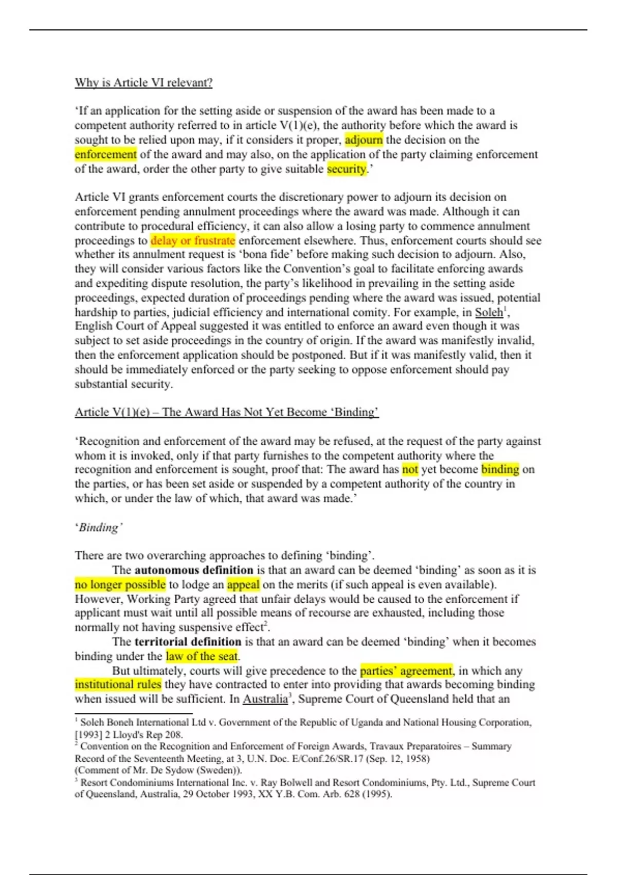 The territorial definition is that an award can be deemed ‘binding’ when it becomes