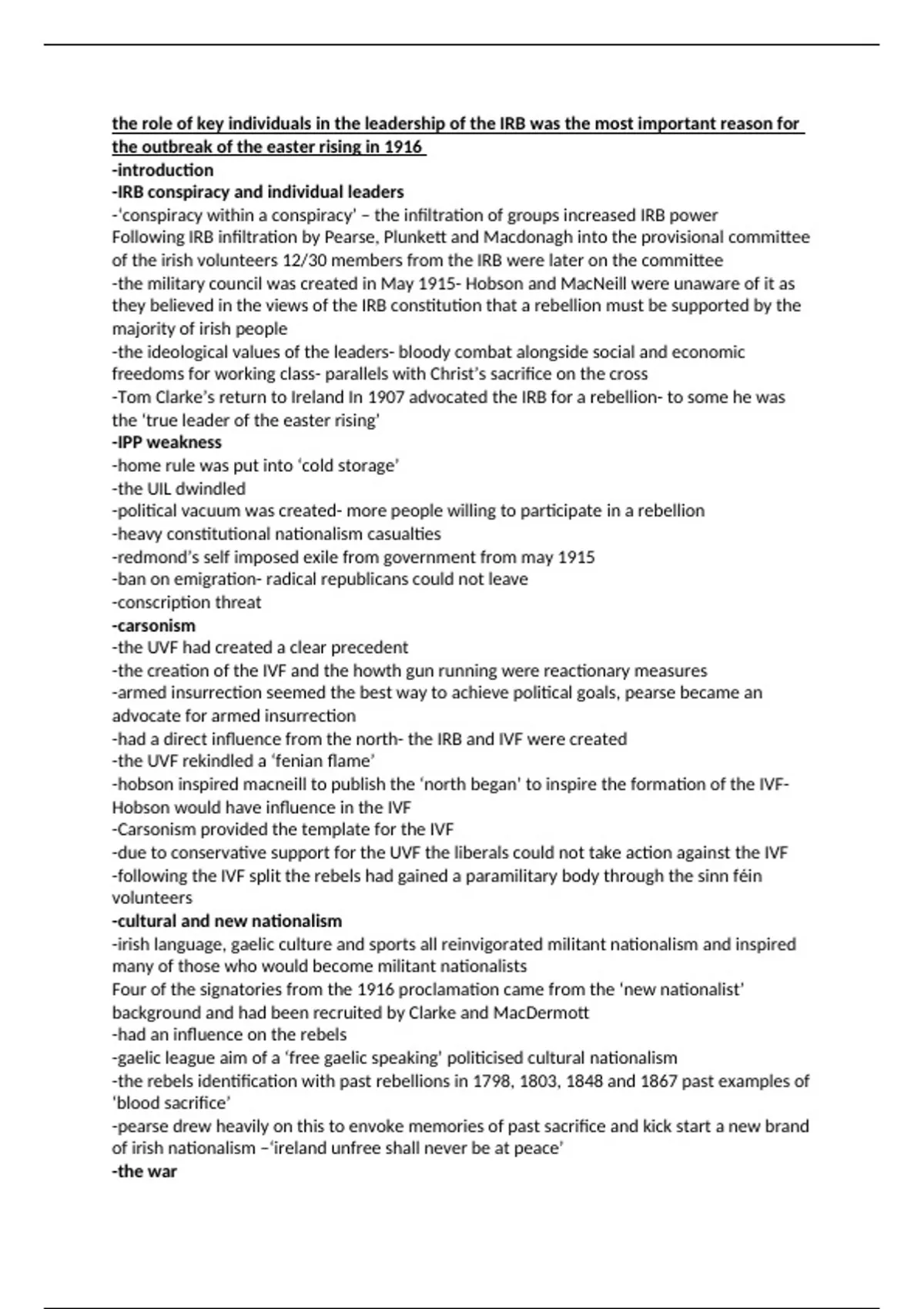 20/20 CCEA A2 Ireland Outbreak of Easter Rising Essay Plan