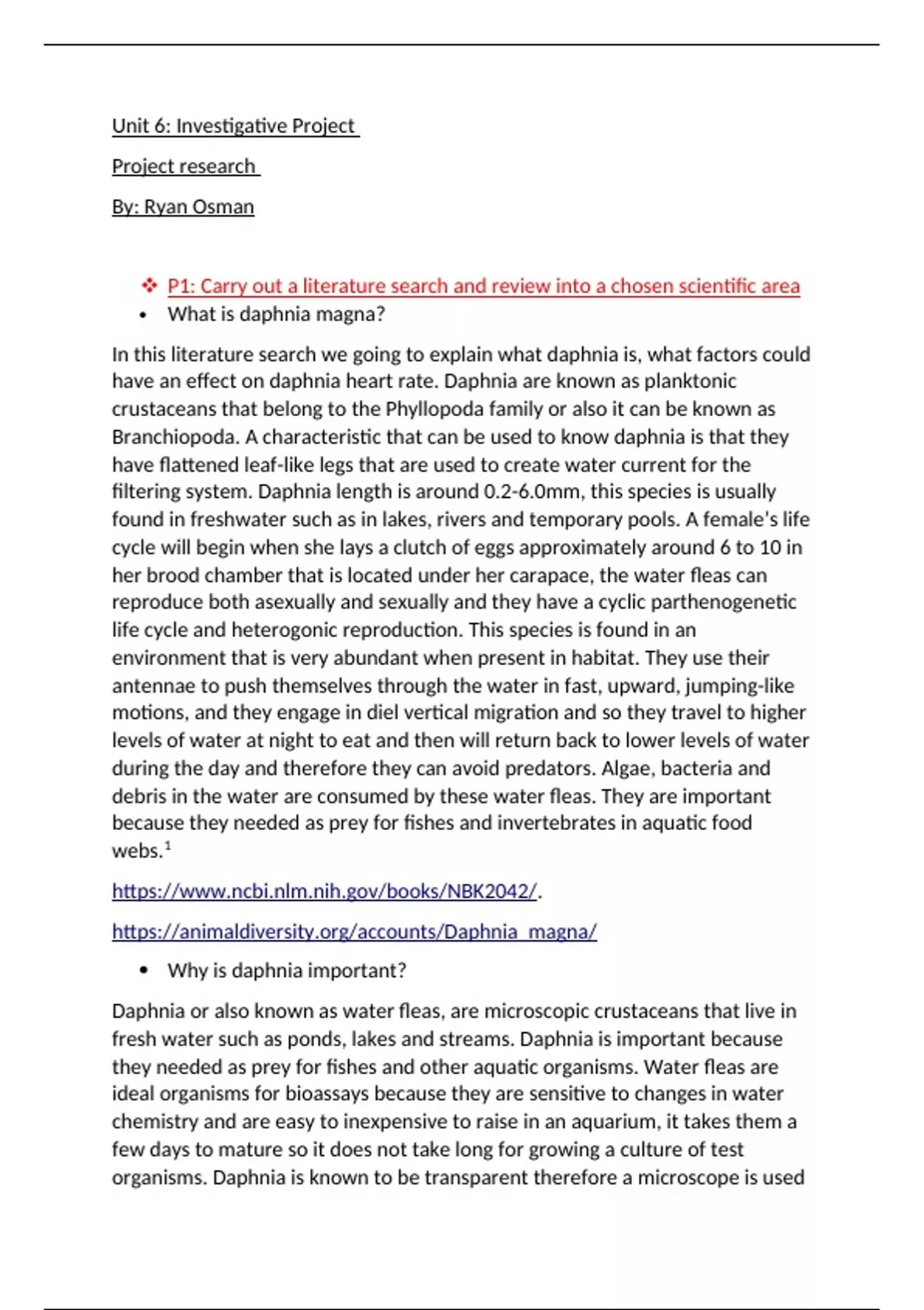 In this literature search we going to explain what daphnia is, what factors could