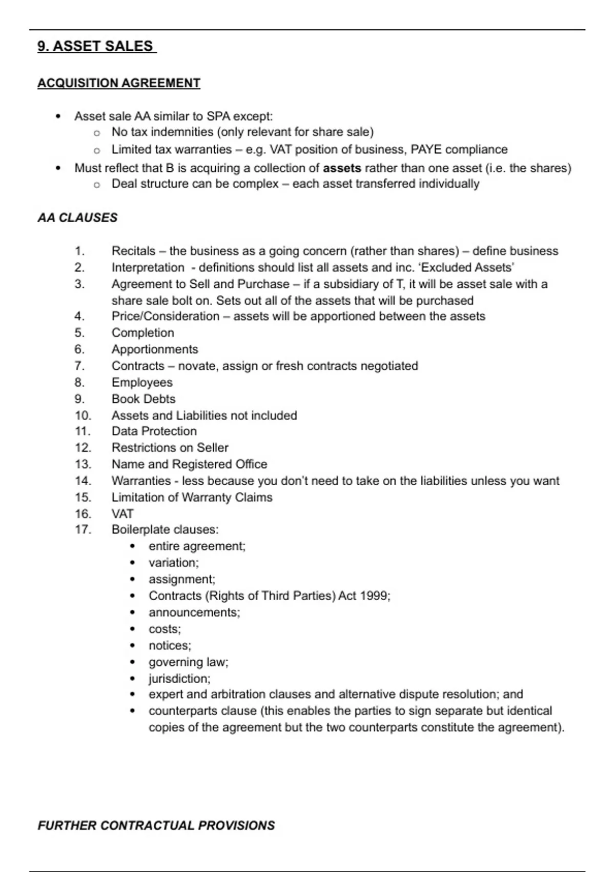 7. Licences – e.g. IP rights and assigning the lease of any property transferred