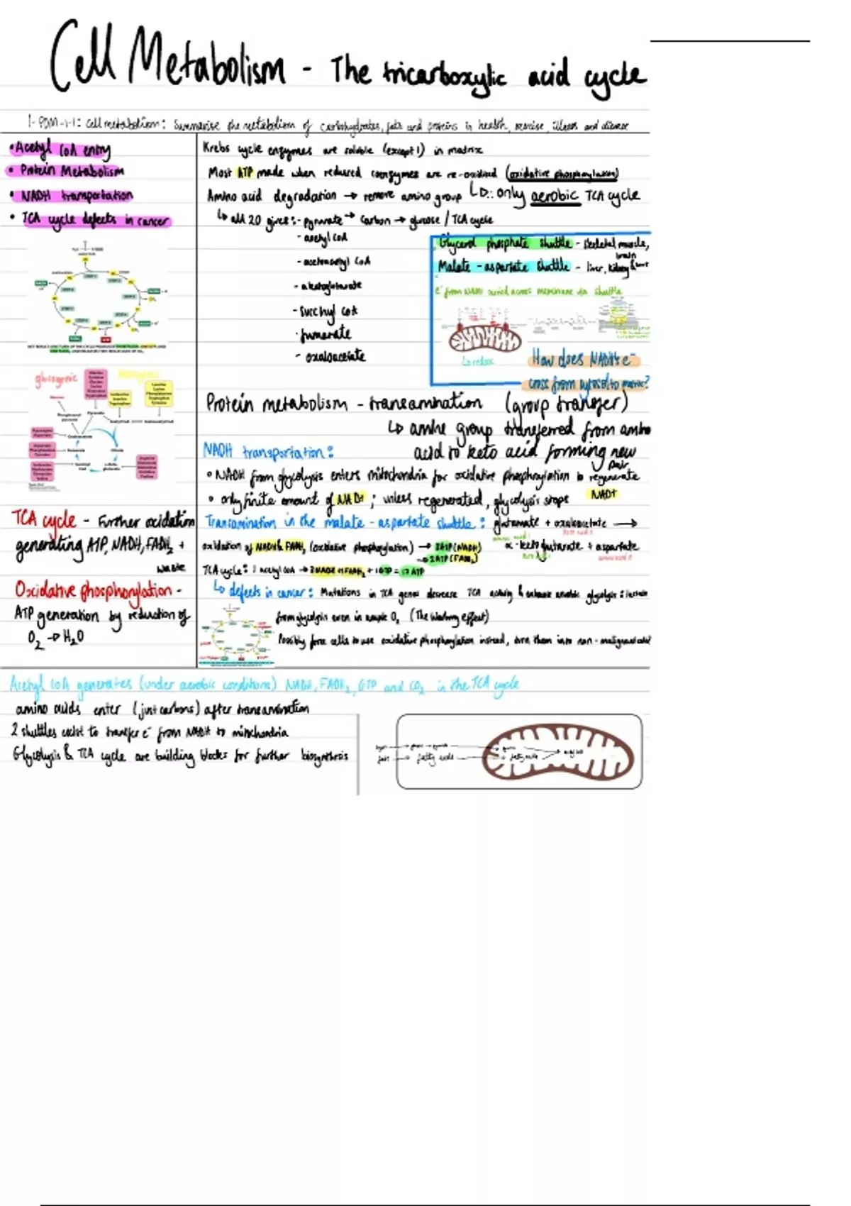 These are lecture notes written on a lecture given on the topic of cell metabolism. The pictures and notes quote the slides used by Dr James Pease.