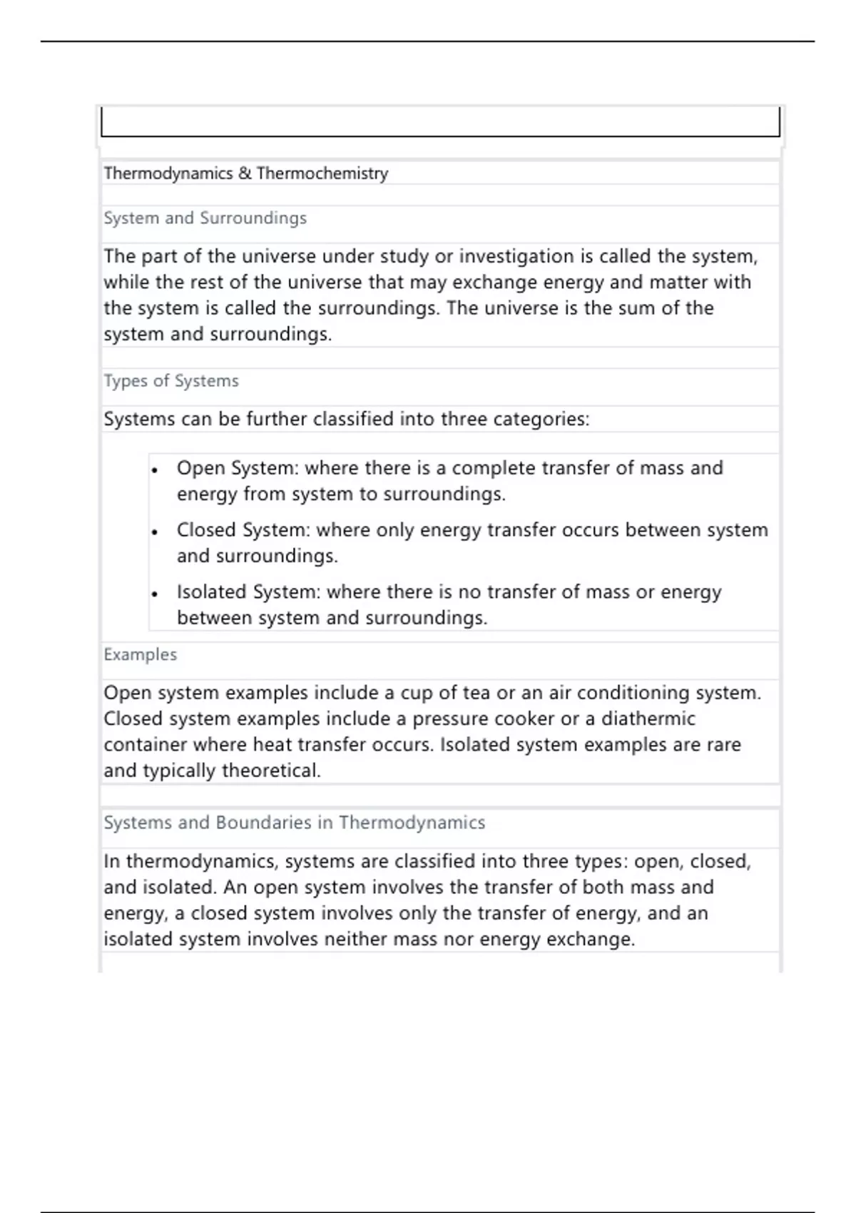 Summary Thermodynamics