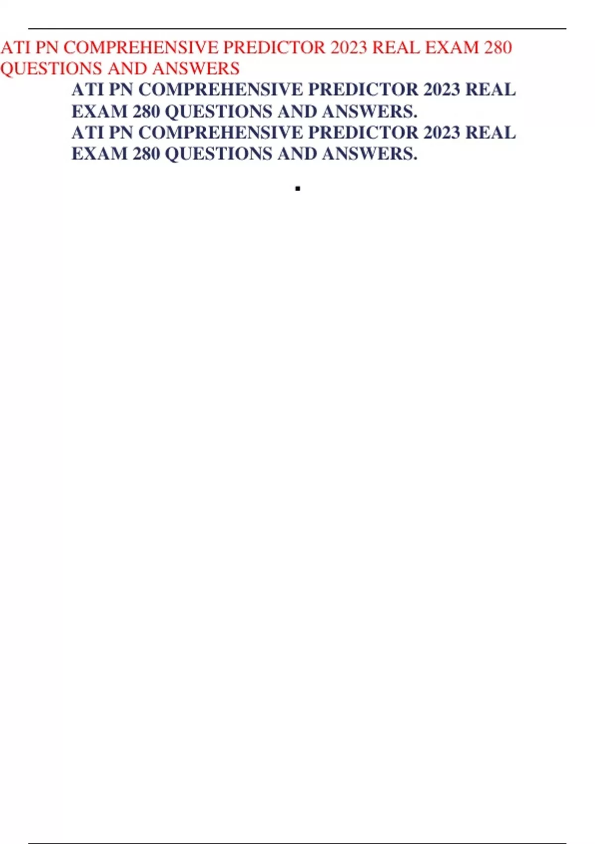 ATI PN COMPREHENSIVE PREDICTOR 2023 REAL EXAM 280 QUESTIONS AND ANSWERS