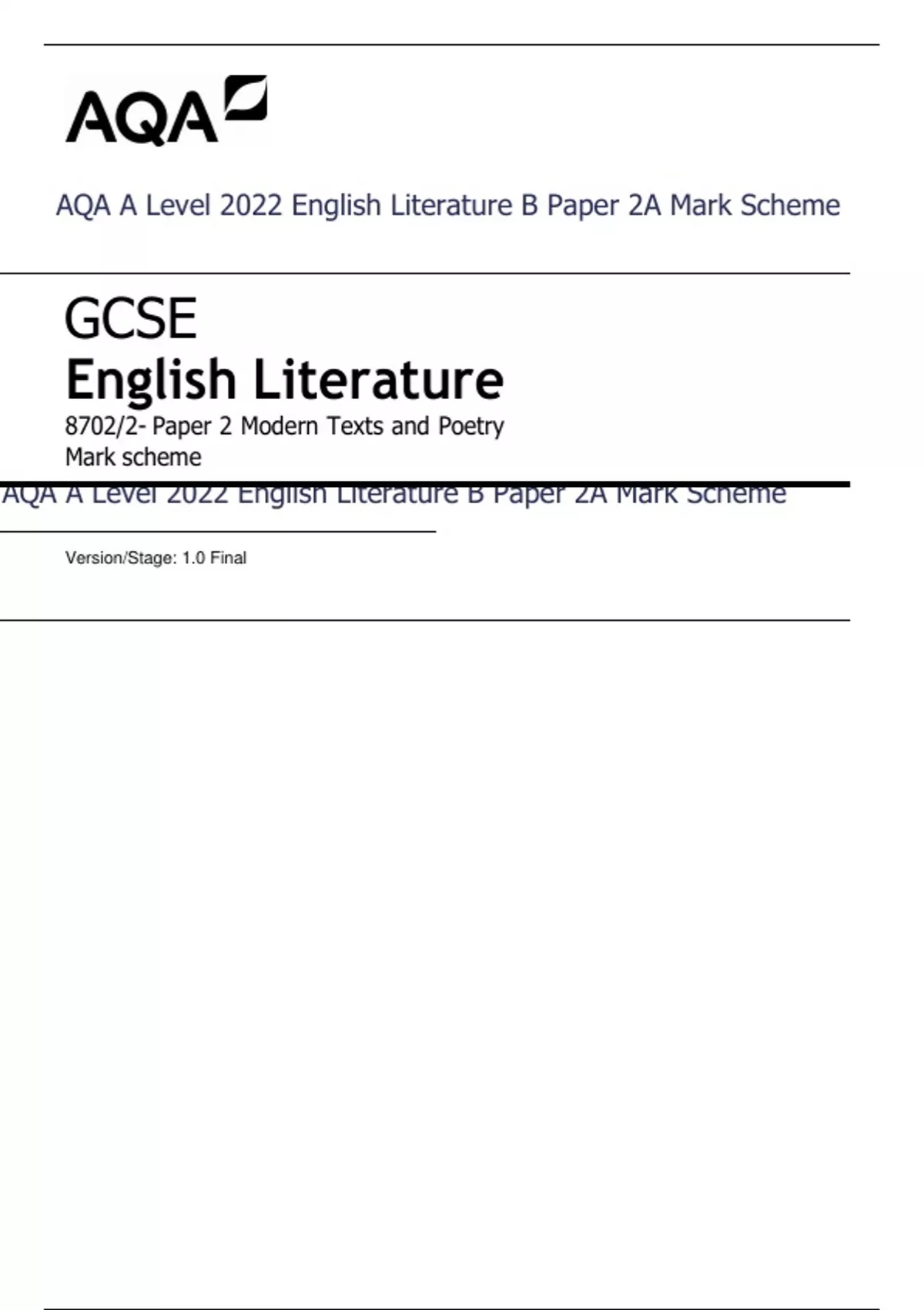 - AQA A Level 2022 English Literature B Paper 2A Mar